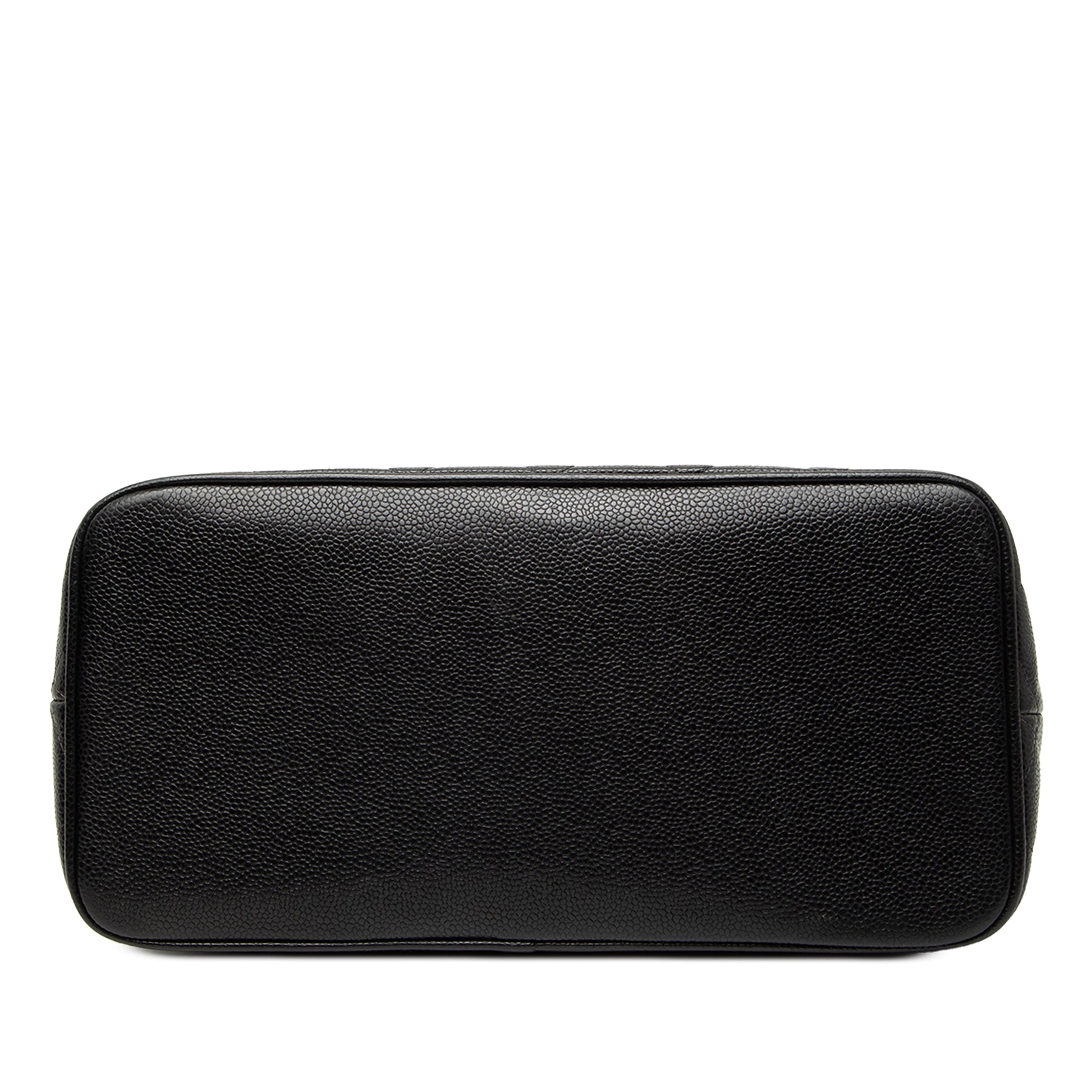 Le sac cabas Medallion est confectionné en cuir caviar matelassé et possède des anses roulées en cuir, une fermeture zippée sur le dessus, une poche plaquée extérieure au dos, ainsi que des poches intérieures zippées et plaquées. Il est en bon état.