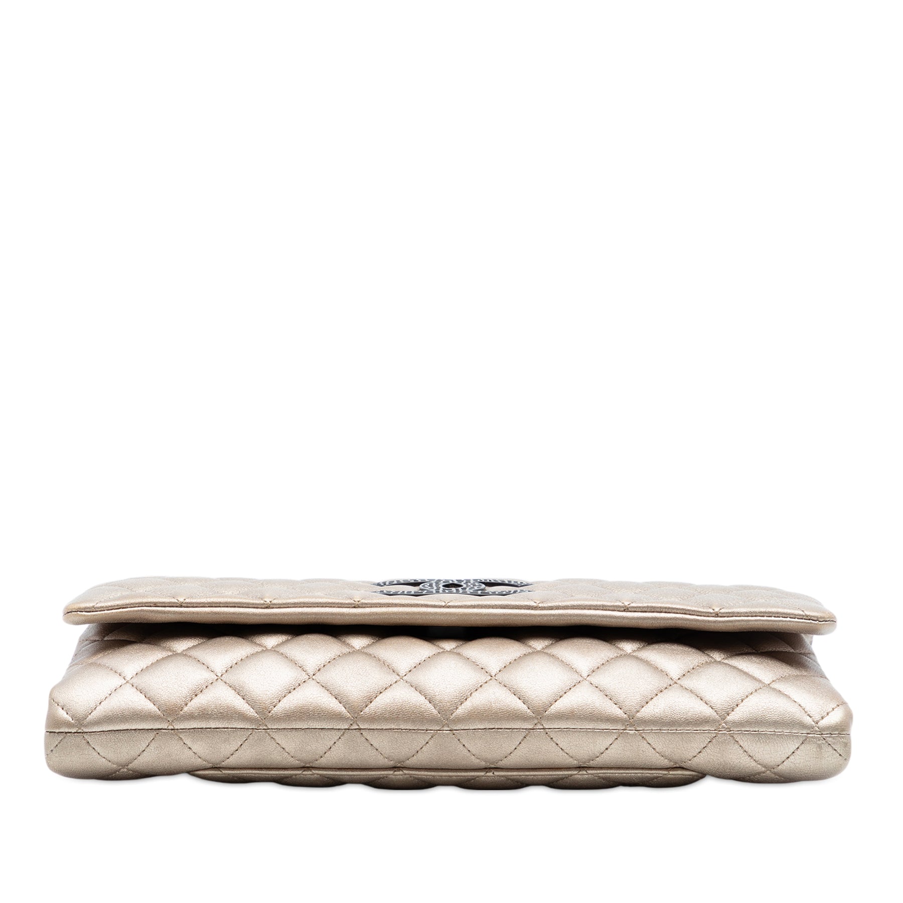 Ce sac bandoulière est en cuir matelassé, possède une bandoulière chaîne ornée d'un papillon, un rabat avant avec fermeture magnétique, une poche plaquée extérieure au dos et une poche intérieure zippée. Il est en excellent état.