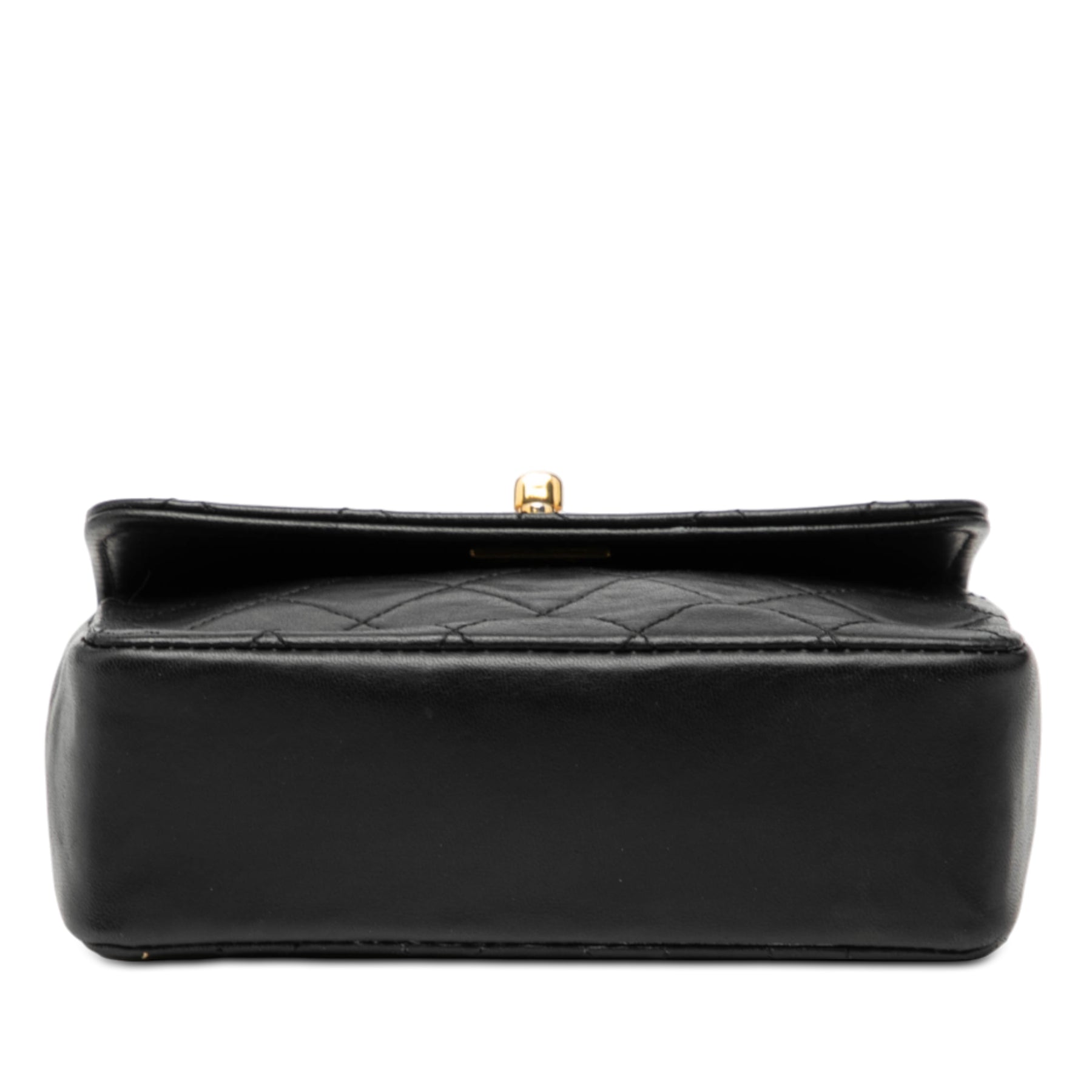Ce sac à rabat est confectionné en cuir matelassé et possède une bandoulière en chaîne tressée de cuir, ainsi qu'un rabat avant orné de deux C entrelacés et d'une fermeture à tourniquet. Il est en bon état.