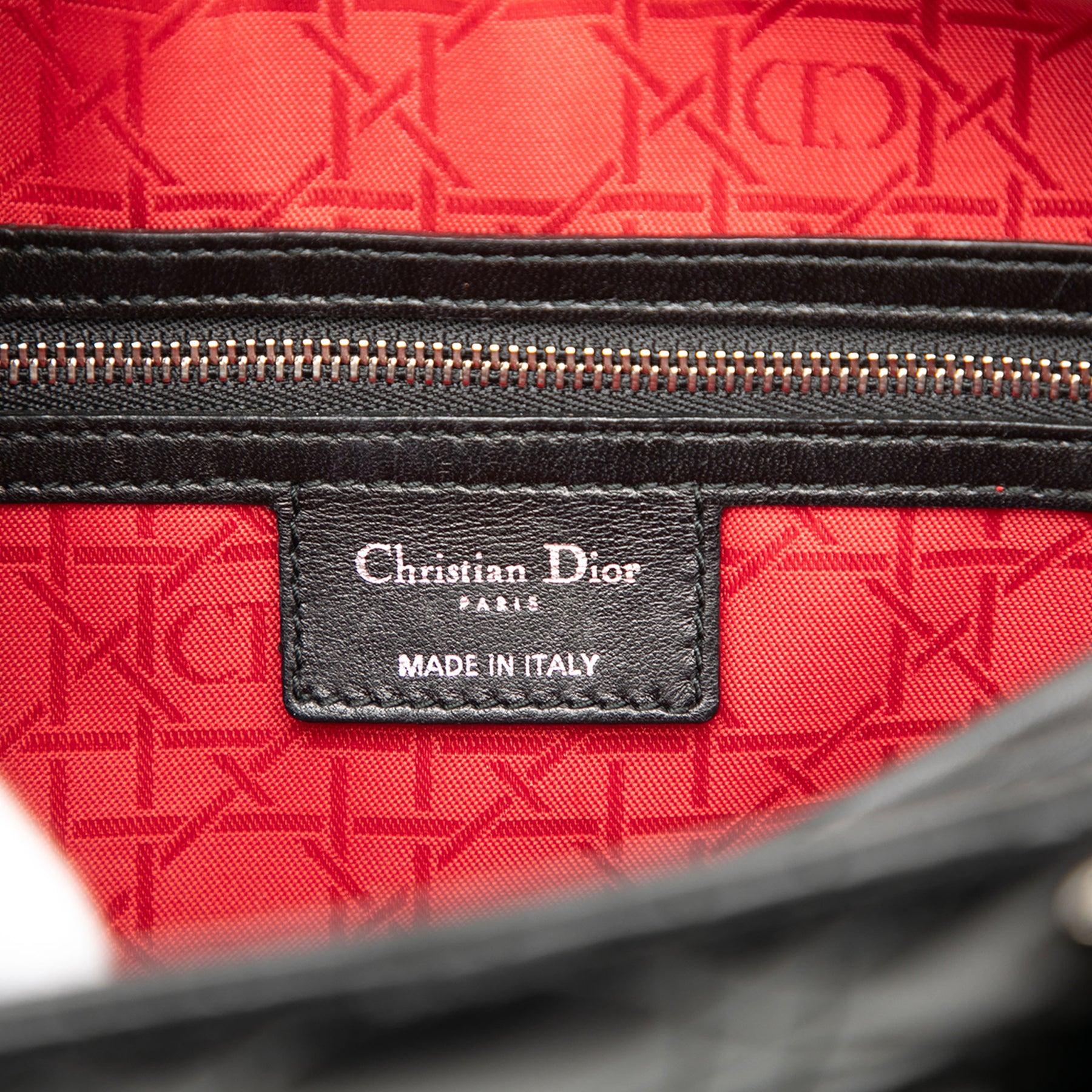 Le sac Lady Dior est confectionné en cuir d'agneau matelassé et présente des anses plates, une bandoulière plate amovible, une fermeture zippée sur le dessus et une poche intérieure zippée. Il est en excellent état.