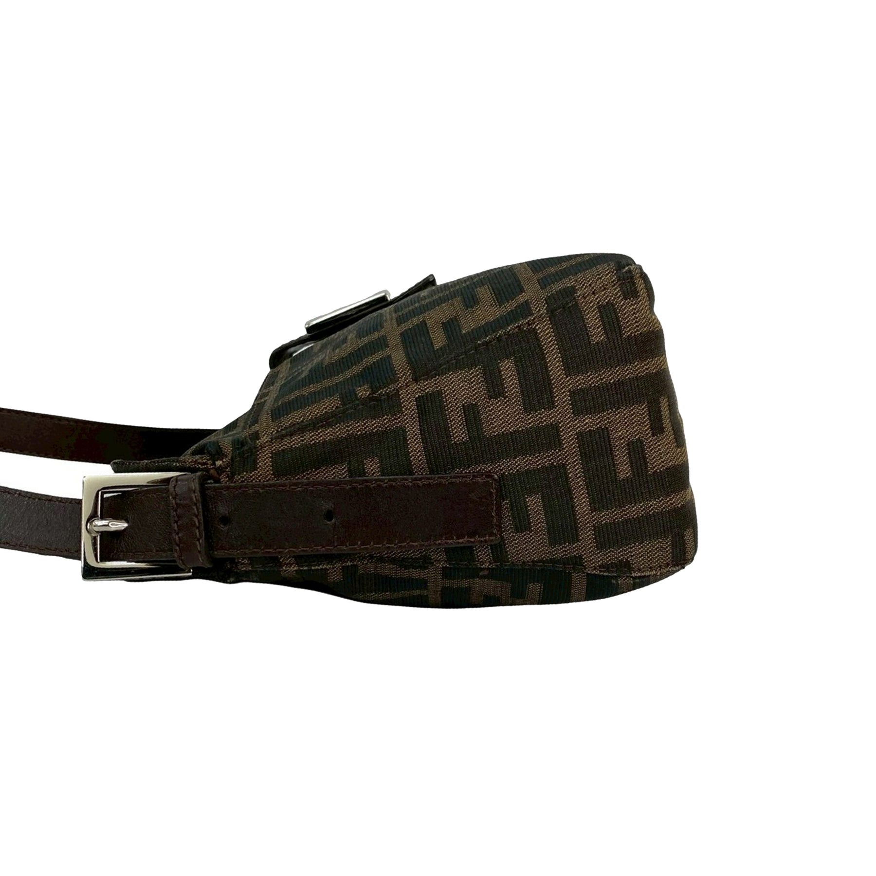Ce sac bandoulière est en toile, possède une bandoulière plate en cuir, une fermeture zippée sur le dessus, une poche extérieure plaquée à l'avant et une poche intérieure zippée. Il est en bon état.