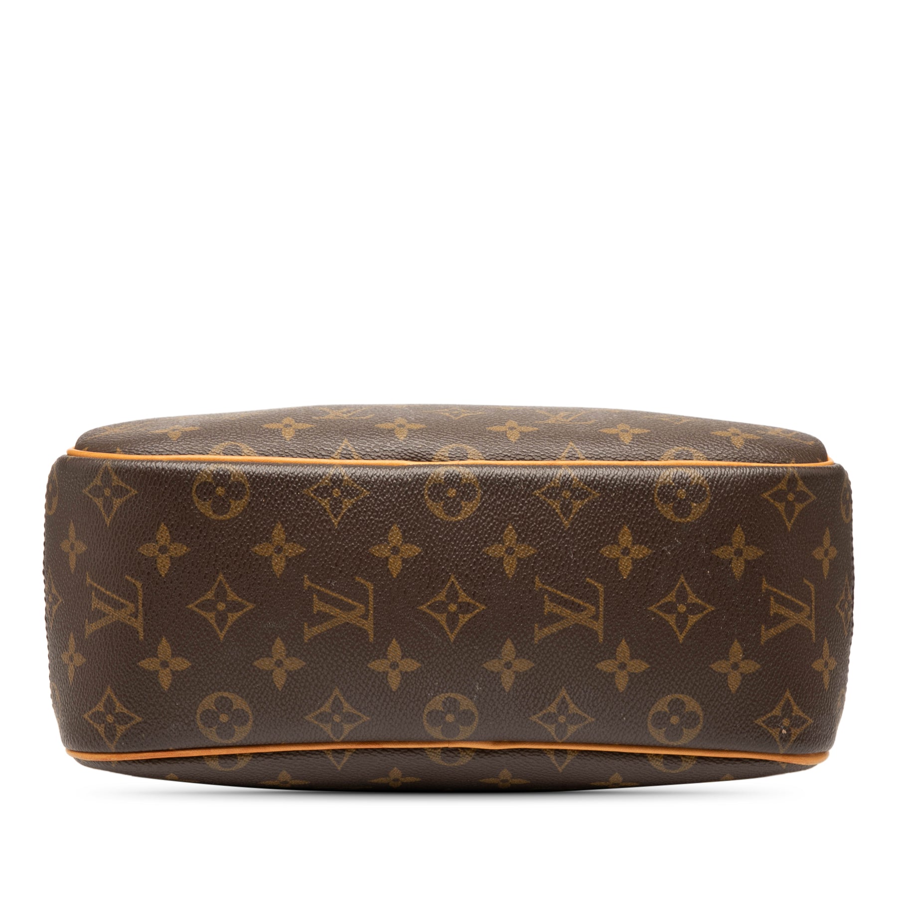 Le sac Trouville est confectionné en toile monogrammée avec des finitions en cuir vachetta, des anses roulées en cuir vachetta, une fermeture zippée sur le dessus, une poche plaquée extérieure et des poches intérieures ouvertes. Il est en bon état.
