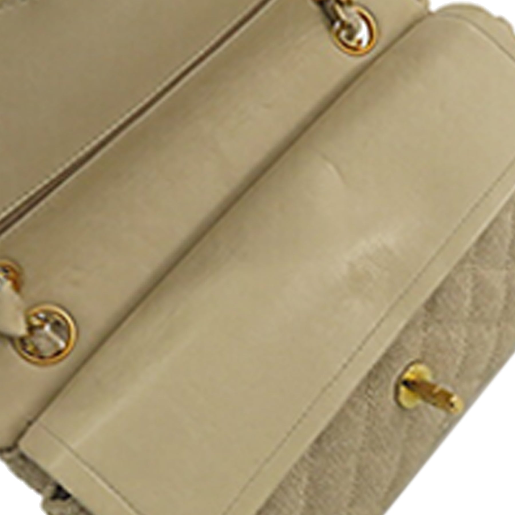 Le sac Classic Double Flap est confectionné en lin matelassé et possède des bandoulières en chaîne tressée de cuir, un double rabat avant orné de deux C entrelacés et d'une fermeture à tourniquet, une poche plaquée extérieure au dos et des poches plaquées intérieures. Il est en bon état.