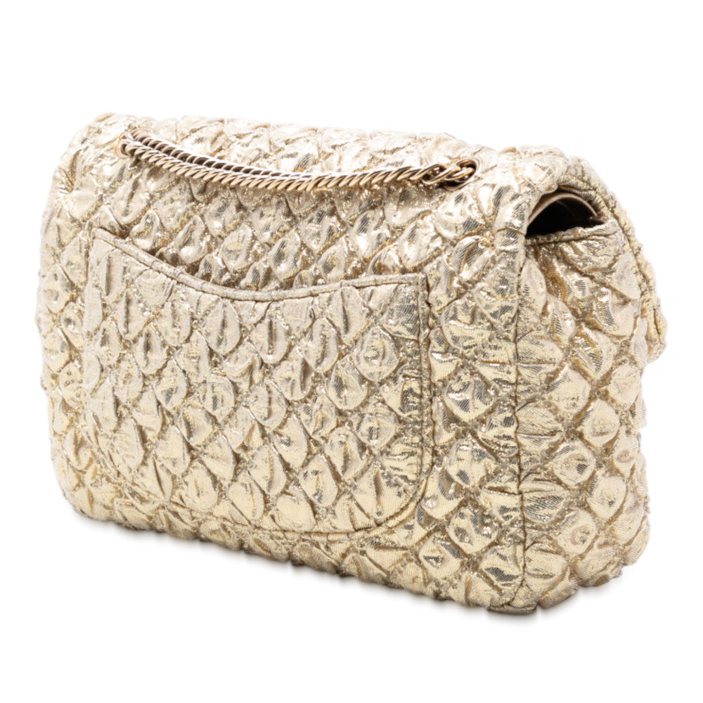 Chanel Mini Matelassé Metallic Cuir de veau Bague anse supérieure à rabat