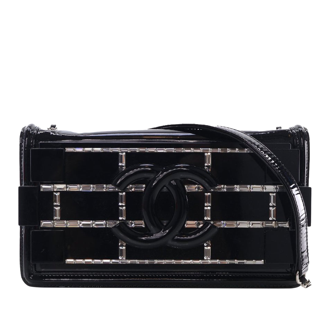 Chanel Matelassé Cuir de veau Strass Pochette avec chaîne à rabat