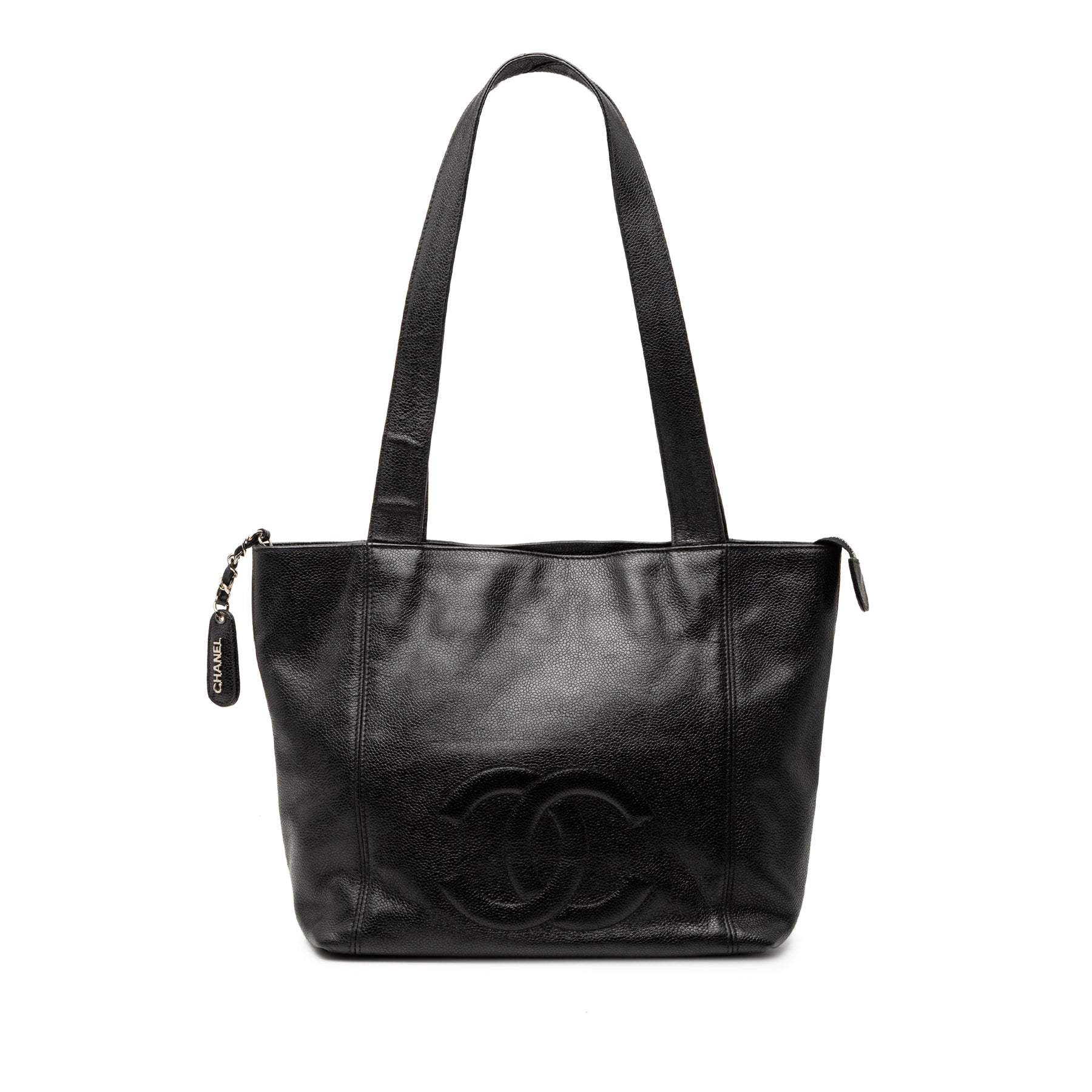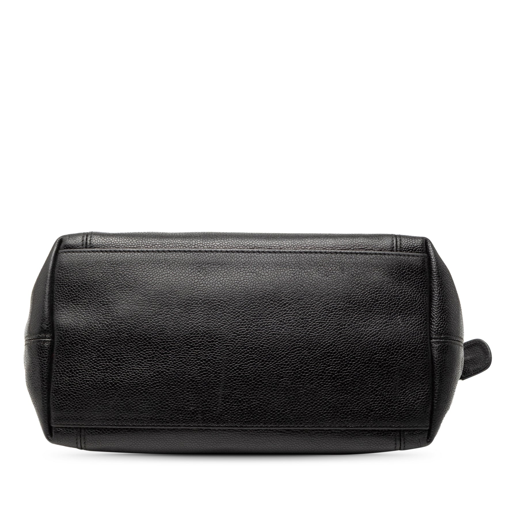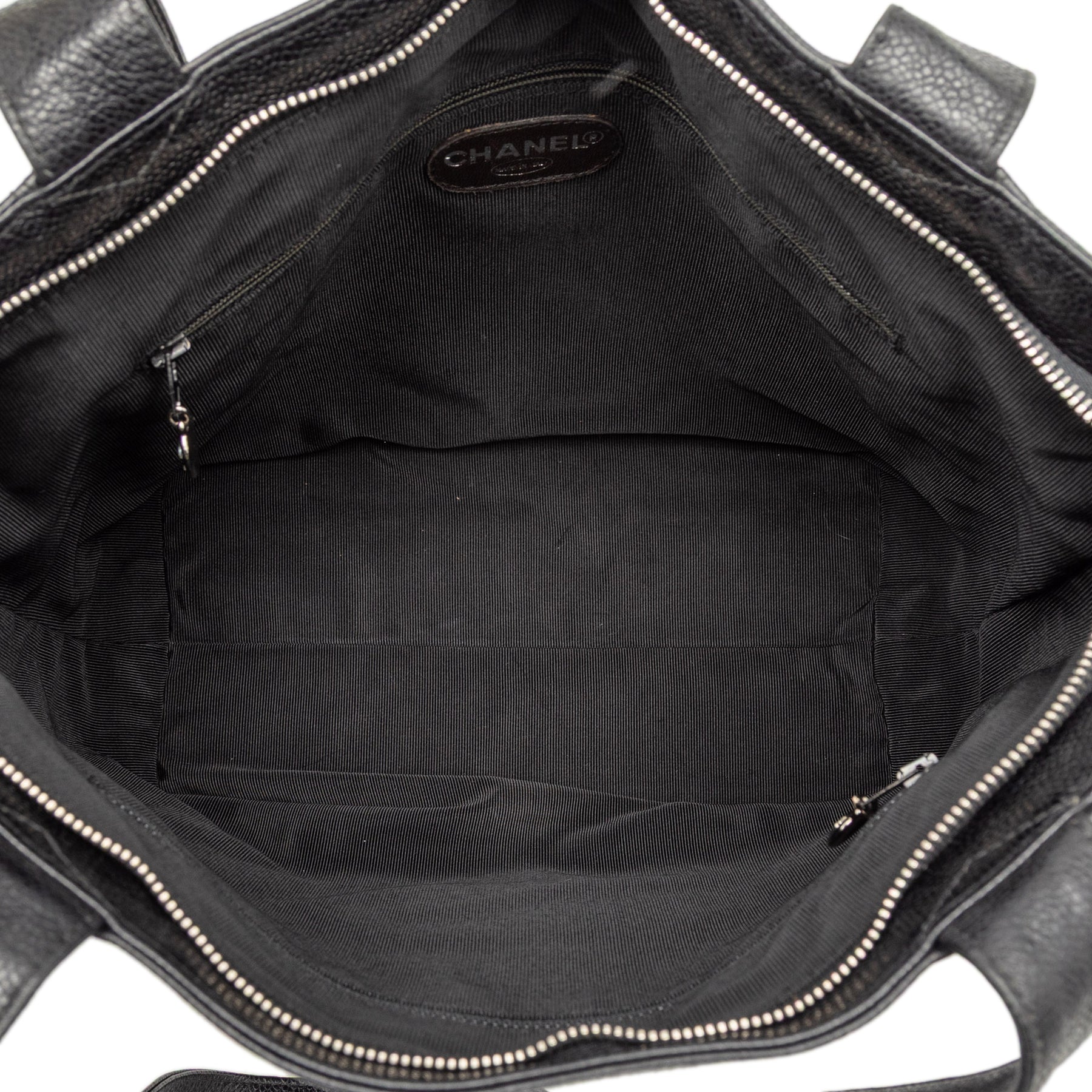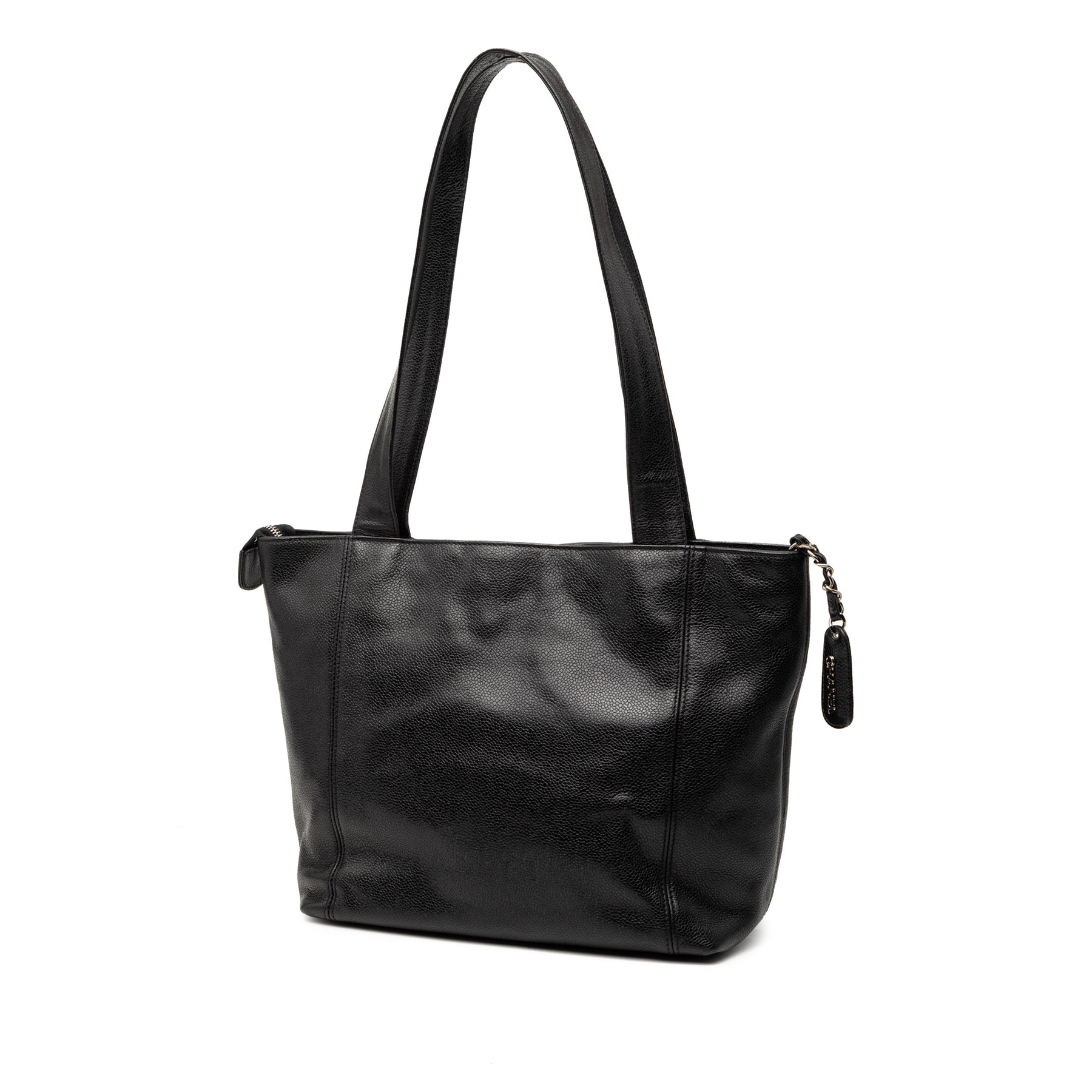 Ce sac cabas est en cuir, avec des anses plates en cuir, une fermeture éclair sur le dessus et des poches intérieures zippées. Il est en bon état.