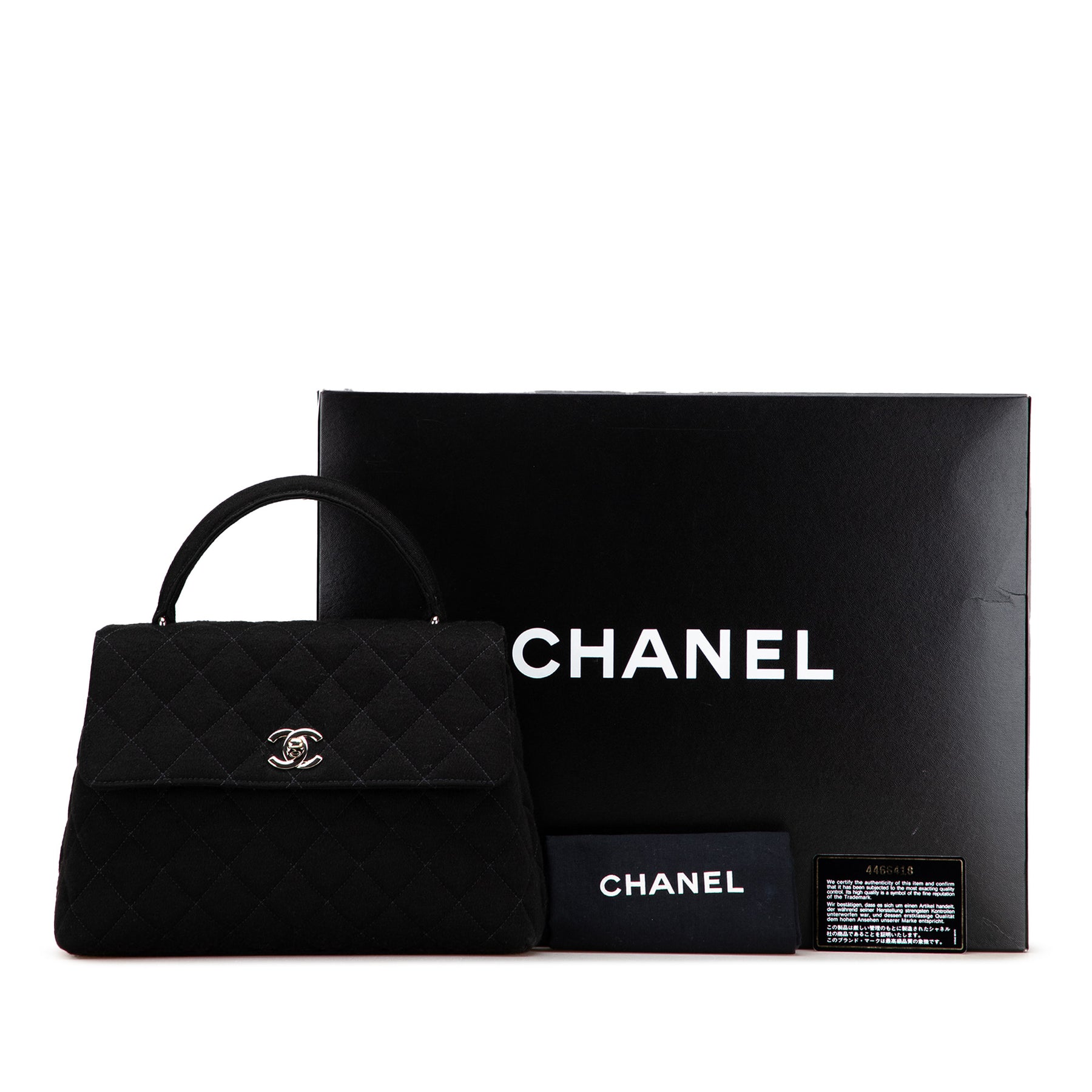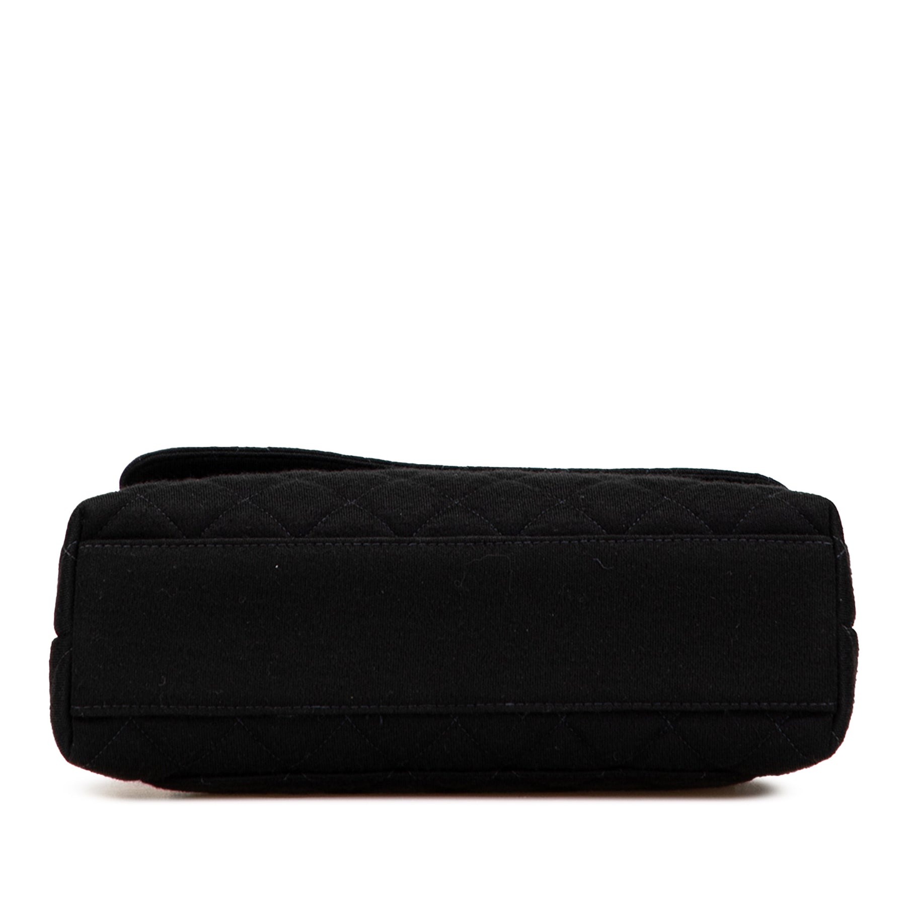 Le sac Kelly est confectionné en coton et possède une poignée roulée, un rabat avec fermoir CC, une poche extérieure plaquée, ainsi que des poches intérieures zippées et plaquées. Il est en excellent état.