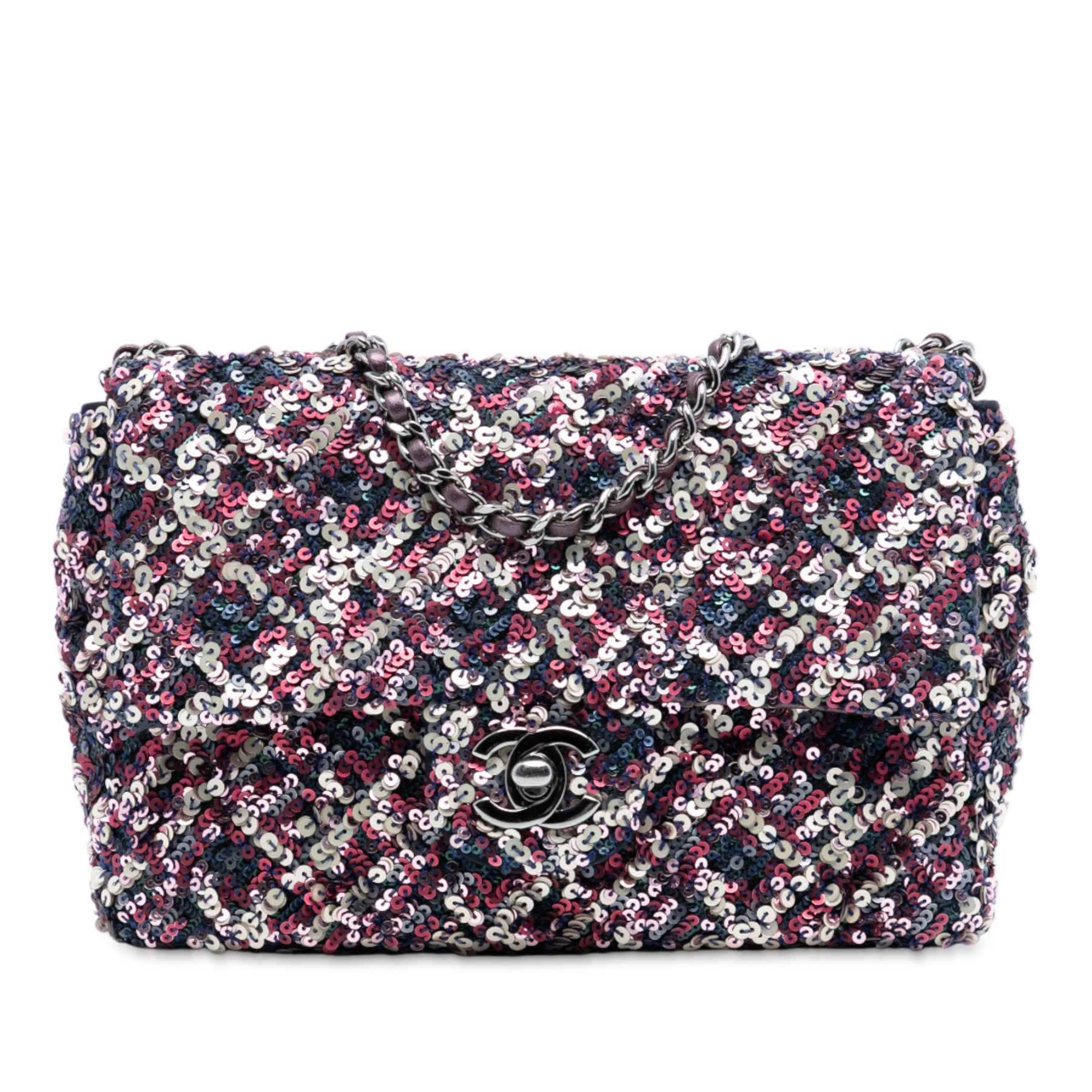 Chanel CC Matelassé Cuir d’agneau Sequins Simple rabat