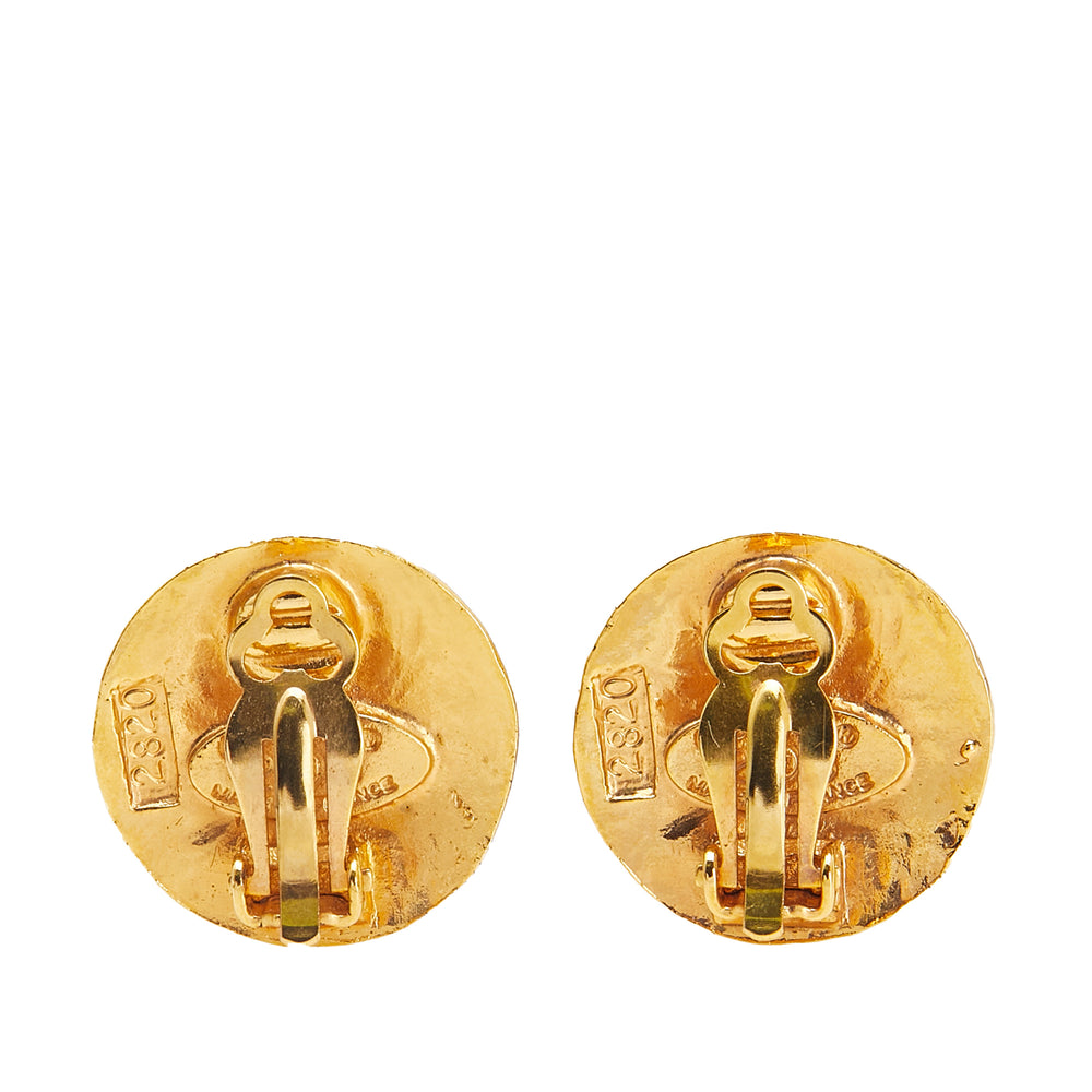 Chanel Doré Plated CC Round Clip On Boucle d’oreilles Doré