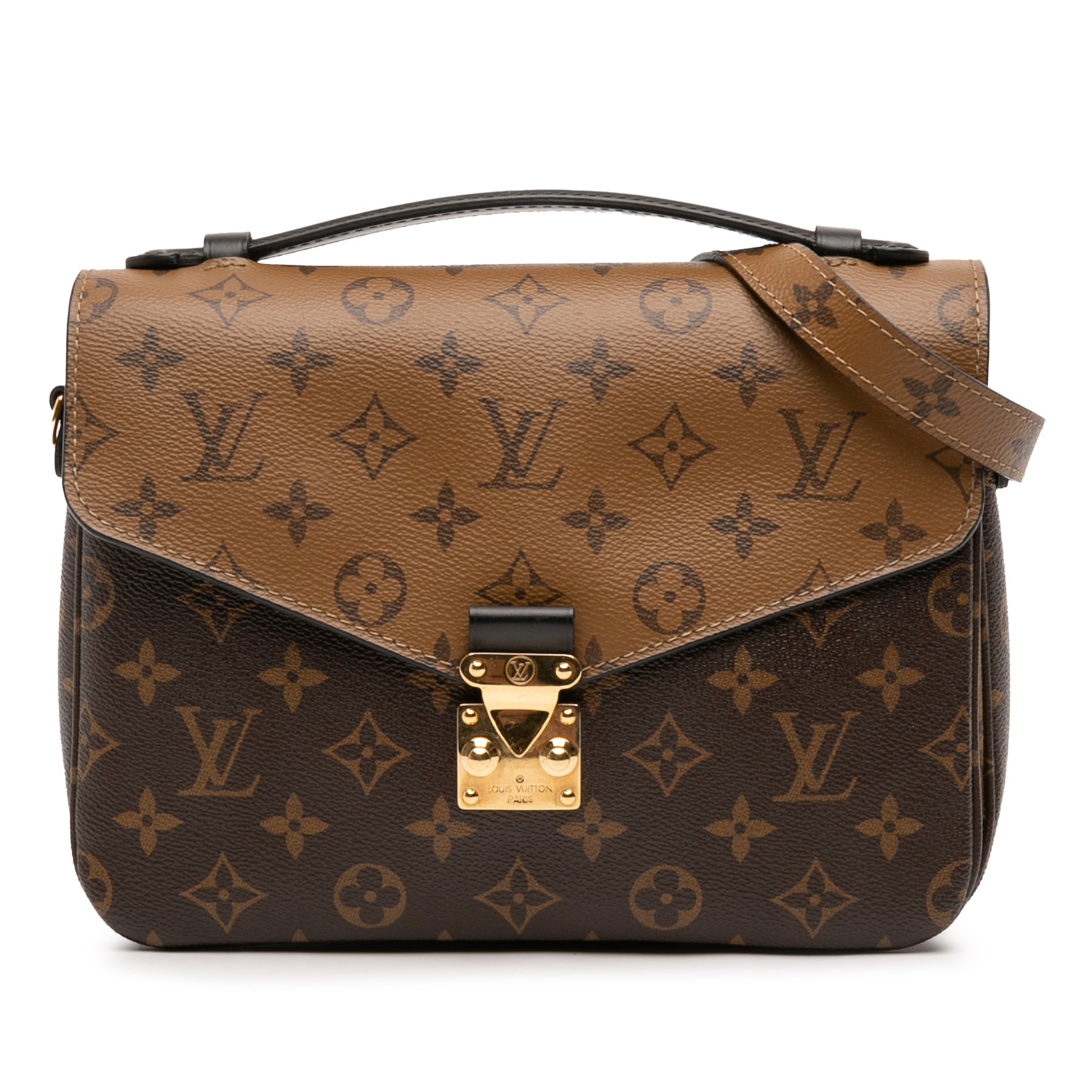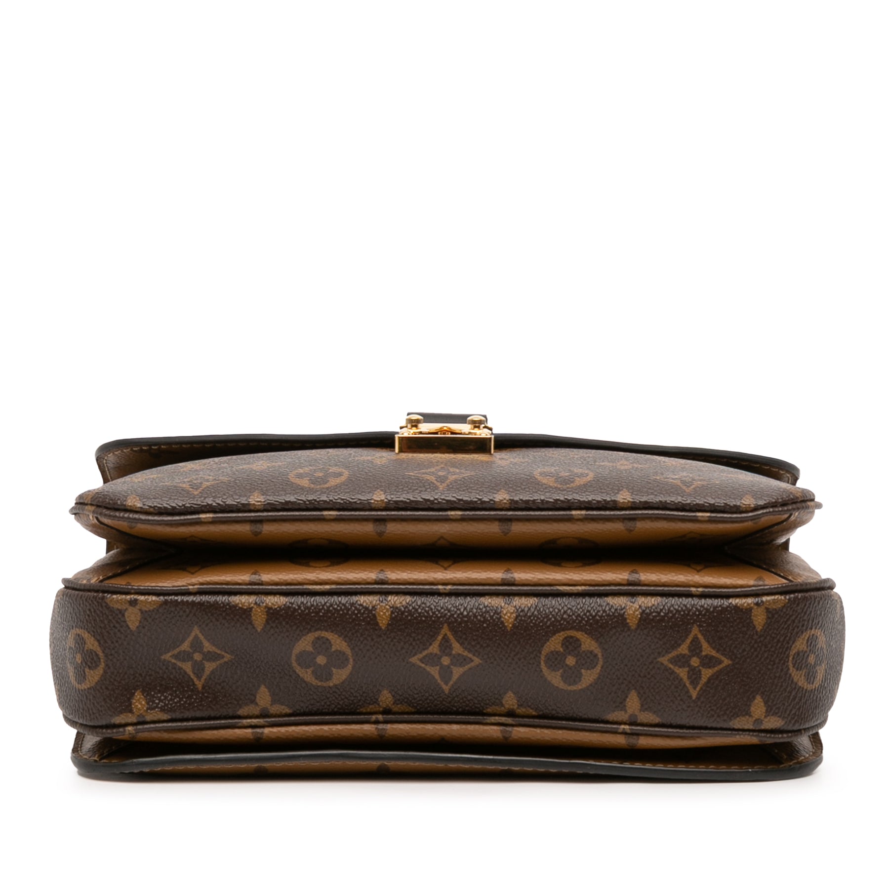 La Pochette Métis inversée est dotée d'un corps en toile monogrammée, d'une poignée supérieure plate, d'une bandoulière plate amovible, d'un rabat avant avec fermoir S-lock, d'une poche extérieure zippée et d'une poche intérieure plaquée. Son état est excellent.