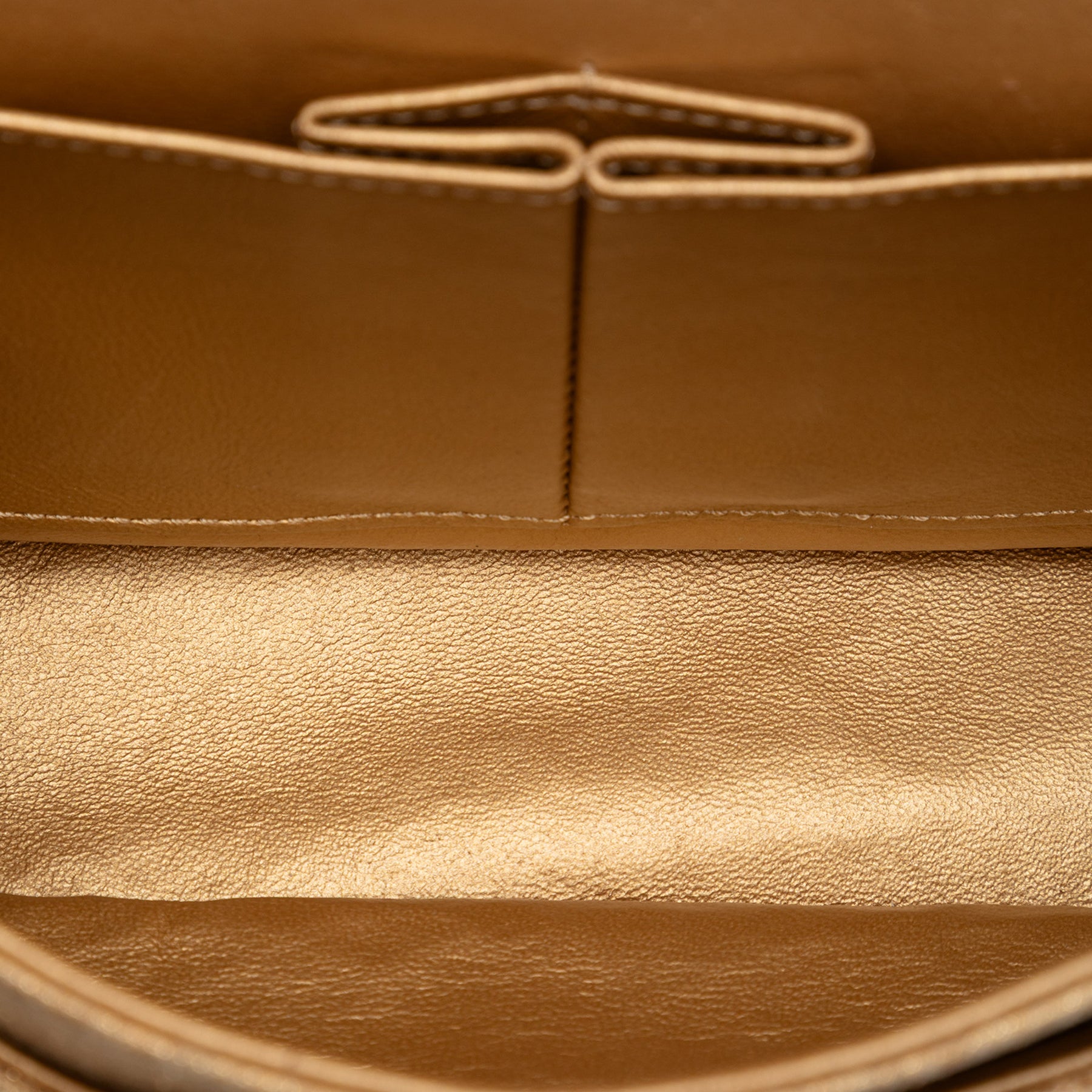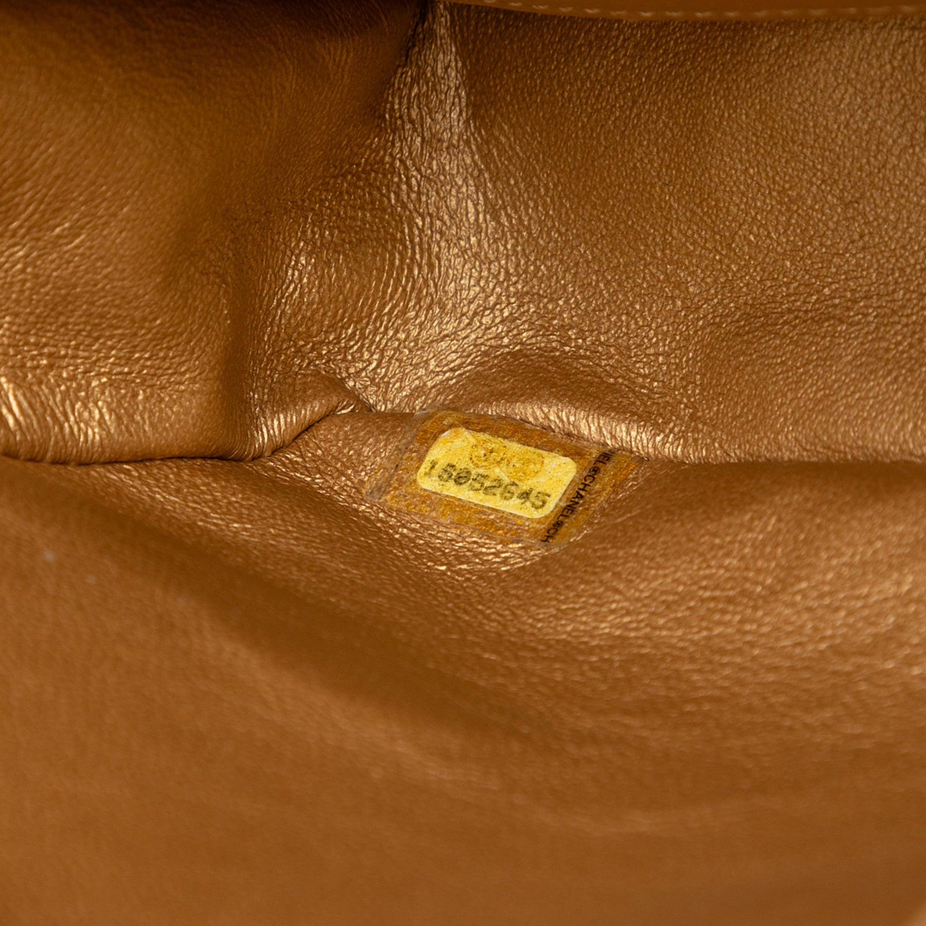 Ce sac bandoulière est confectionné en toile brodée et possède des bandoulières en chaîne tressée de cuir, un double rabat avant avec fermoir CC pivotant, une poche plaquée extérieure au dos, ainsi que des poches intérieures zippées et plaquées. Il est en bon état.