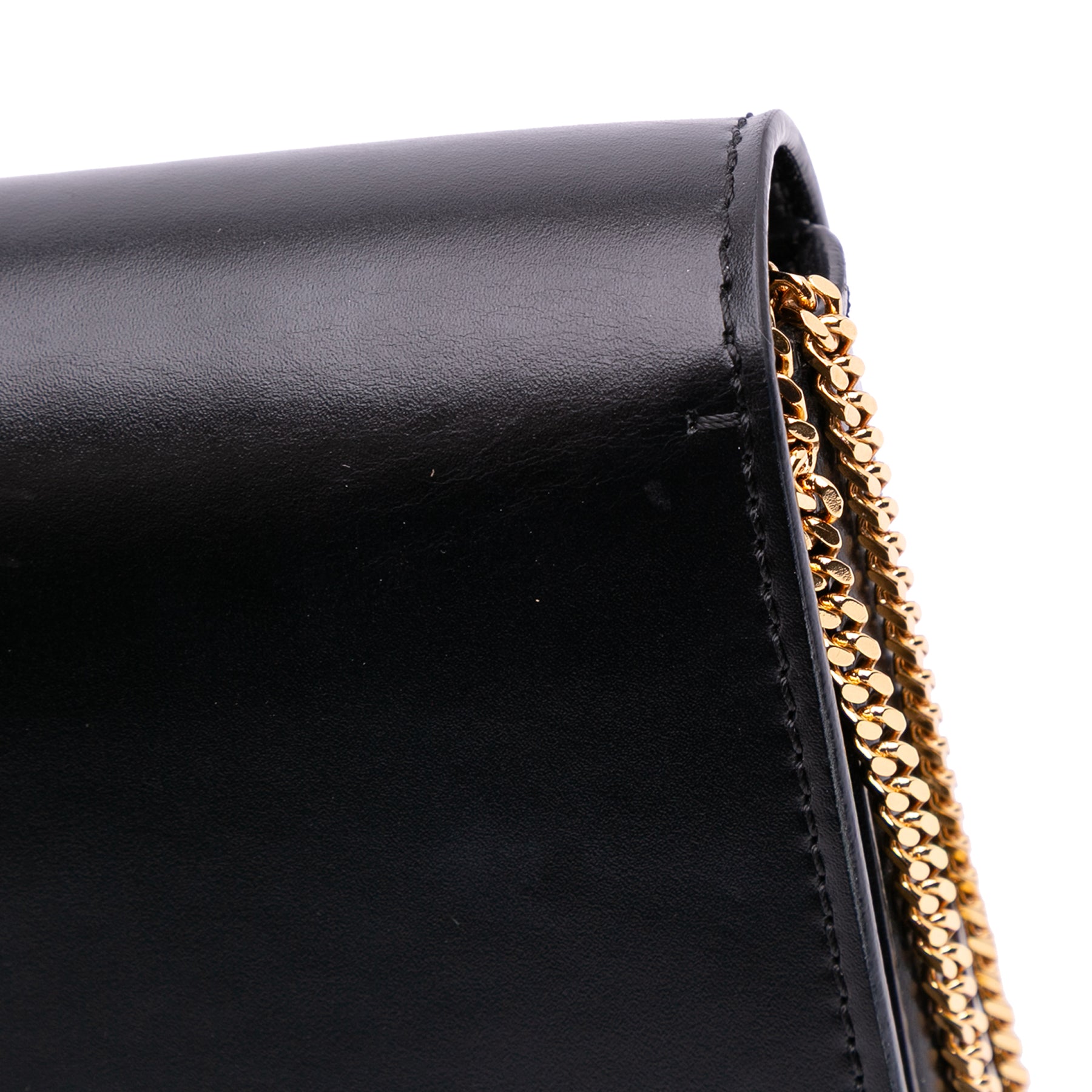 La pochette Grace est en cuir, possède une dragonne chaîne, un rabat avant à fermeture magnétique et des poches intérieures plaquées. Elle est en bon état.