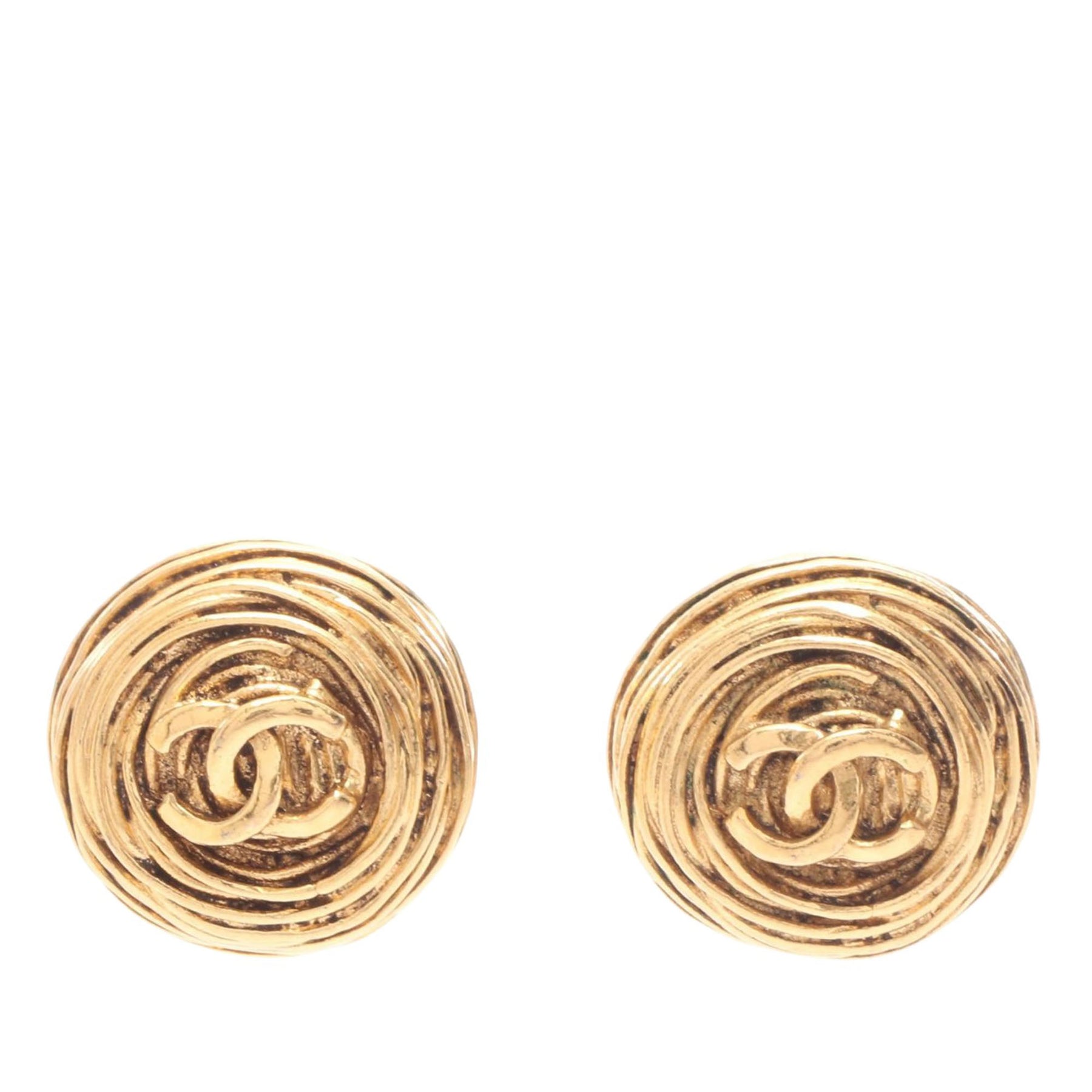 Chanel CC plaqué Rond Clip On Boucle d’oreilles