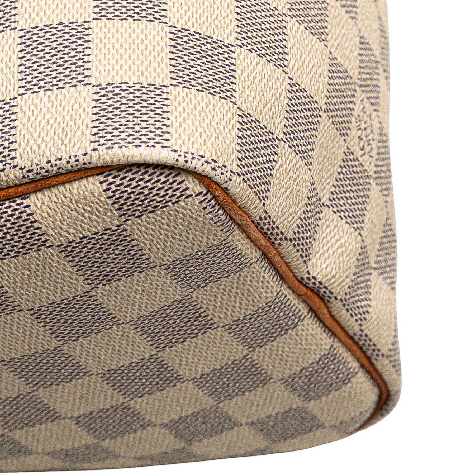 Le Speedy 25 est doté d'une toile Damier Azur, de poignées roulées en cuir vachette et d'une fermeture zippée sur le dessus. Il est en bon état.