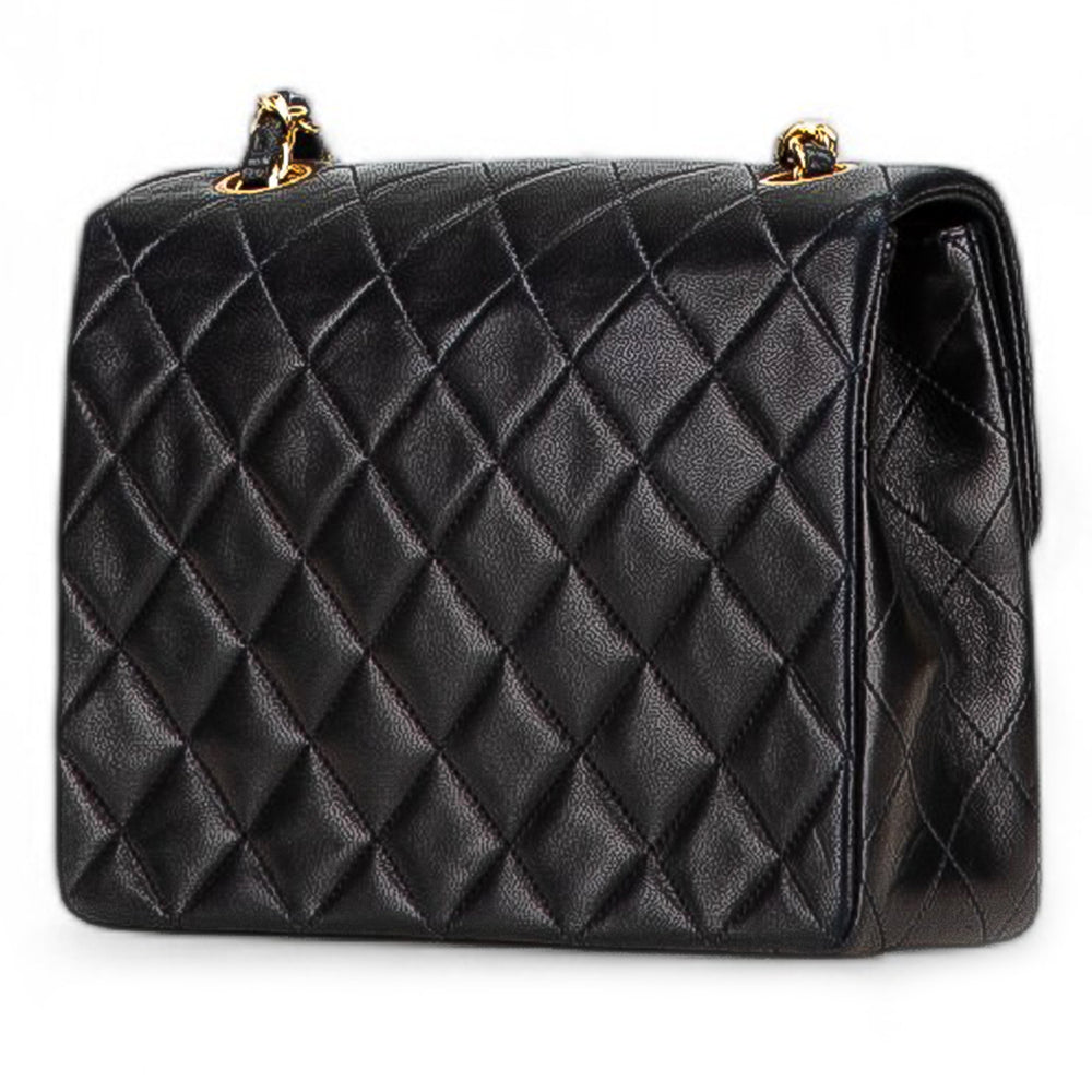 Chanel Square Quilted Cuir d’agneau Simple rabat Noir