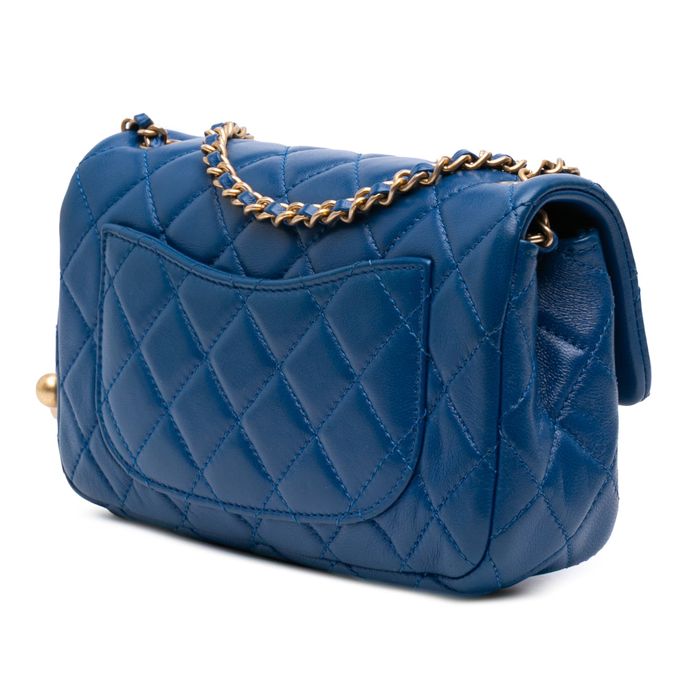Chanel Mini Rectangular Classic Cuir d’agneau Pearl Crush Simple rabat Bleu