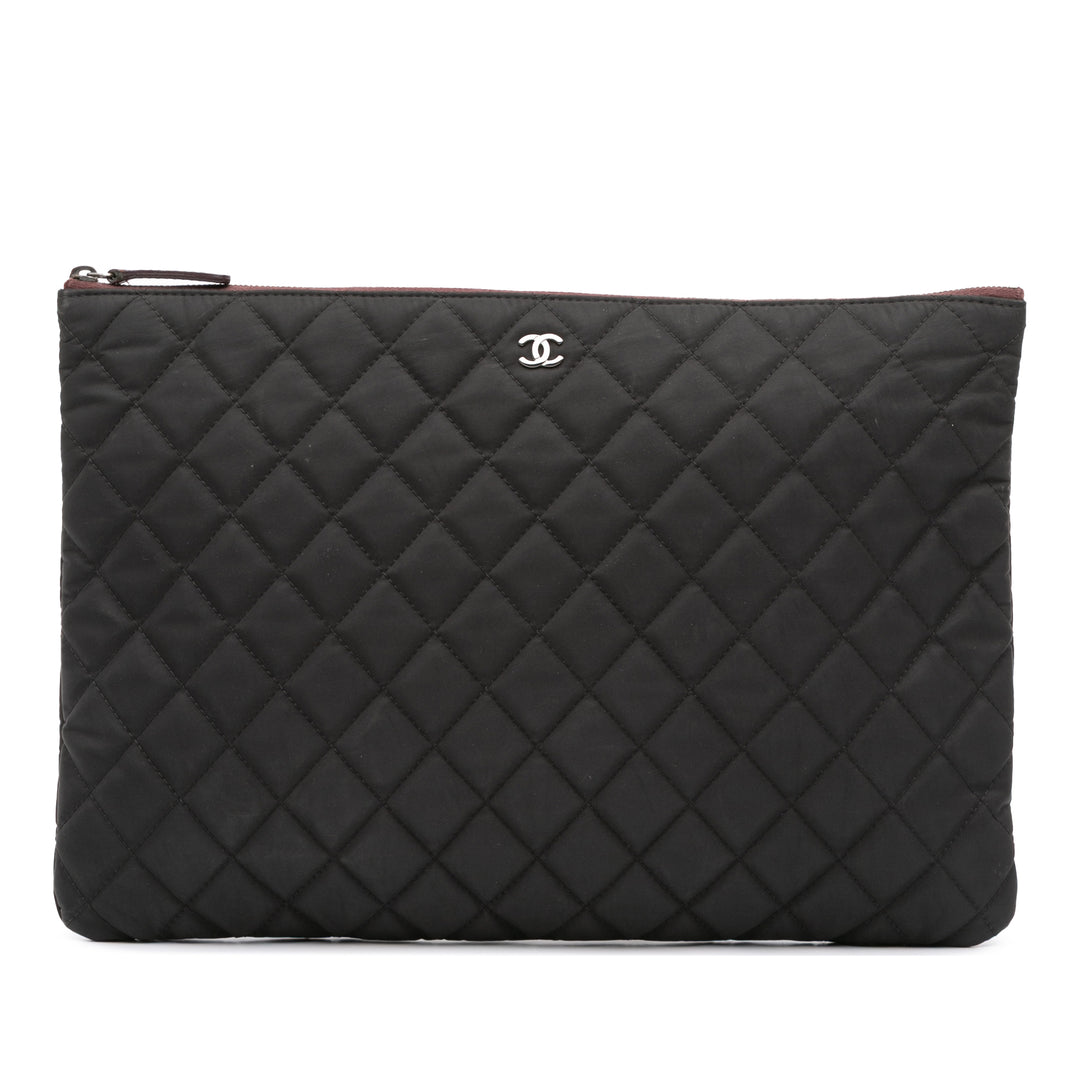 Chanel Large Quilted Nylon O Étui Pochette Noir