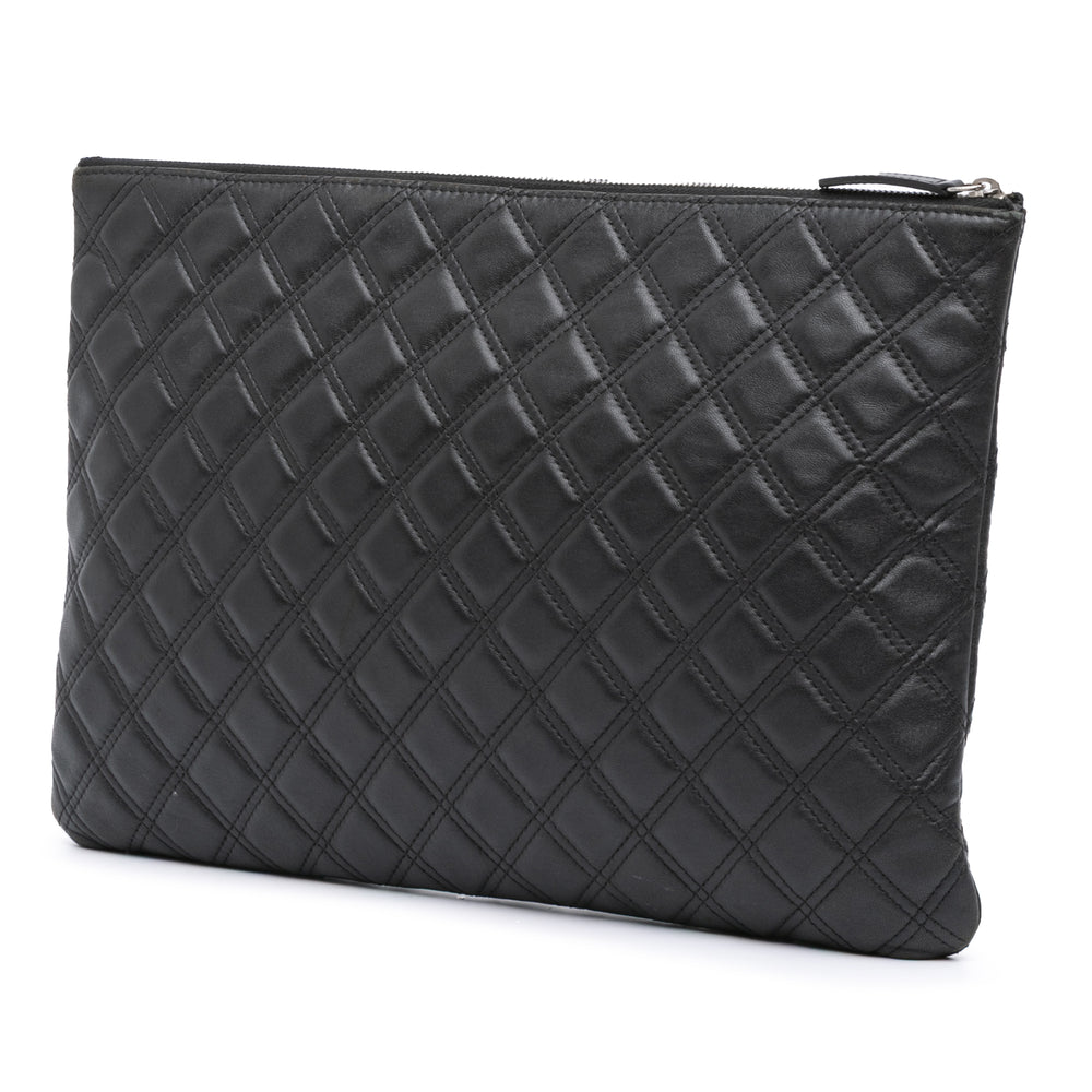 Chanel Large Quilted Cuir d’agneau Double Stitch O Étui Pochette Noir