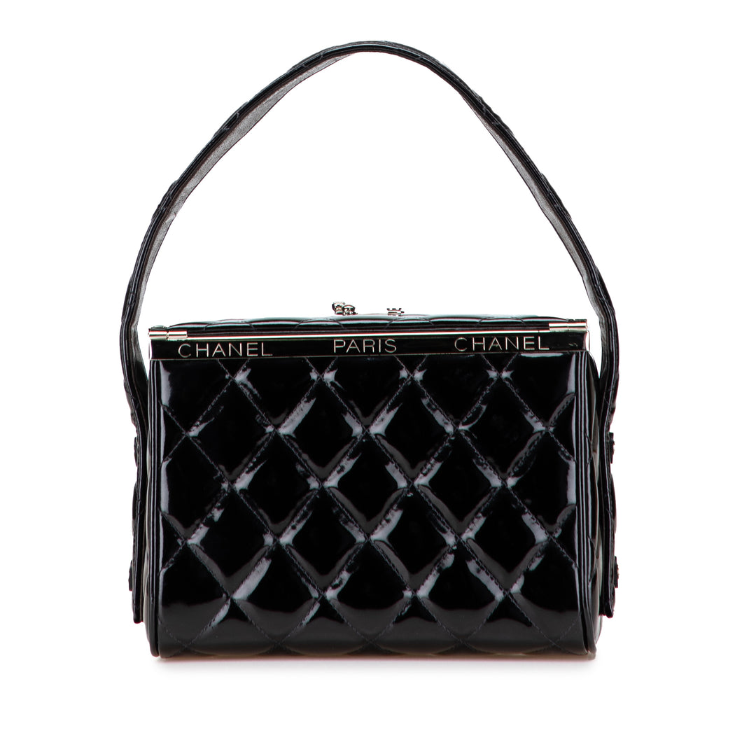 Chanel Mini CC Quilted Cuir verni Cuir Top Handle Pochette with Chain Noir