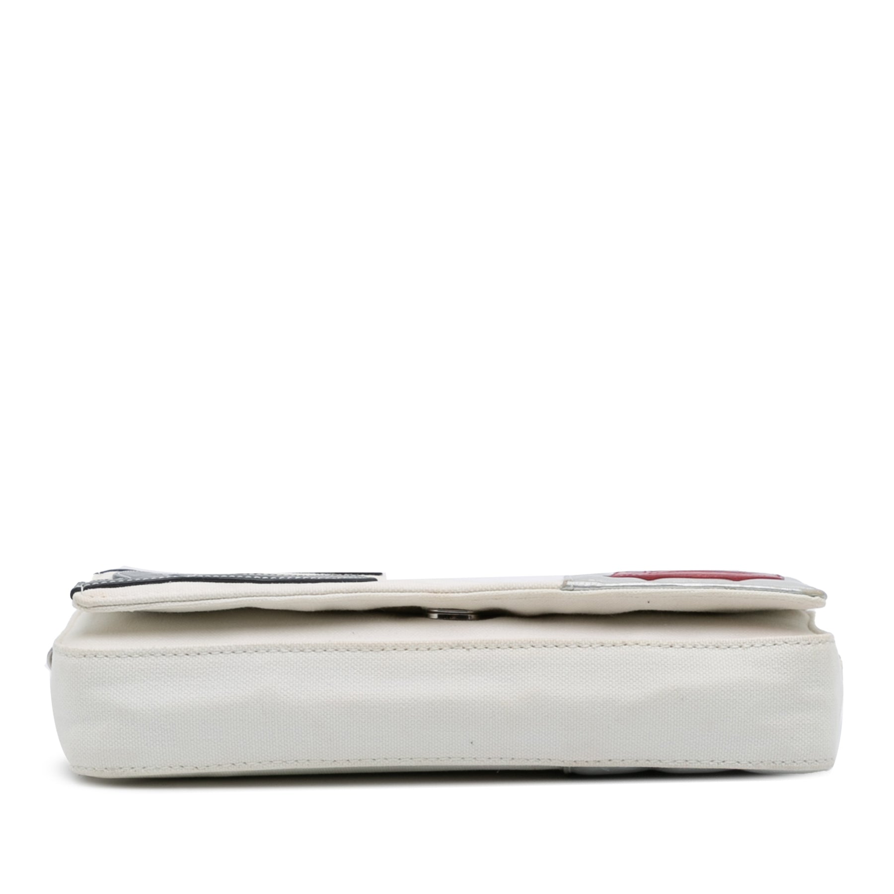 Chanel CC Toile and Métallisé Cuir d’agneau No. 5 Chain Flap Blanc