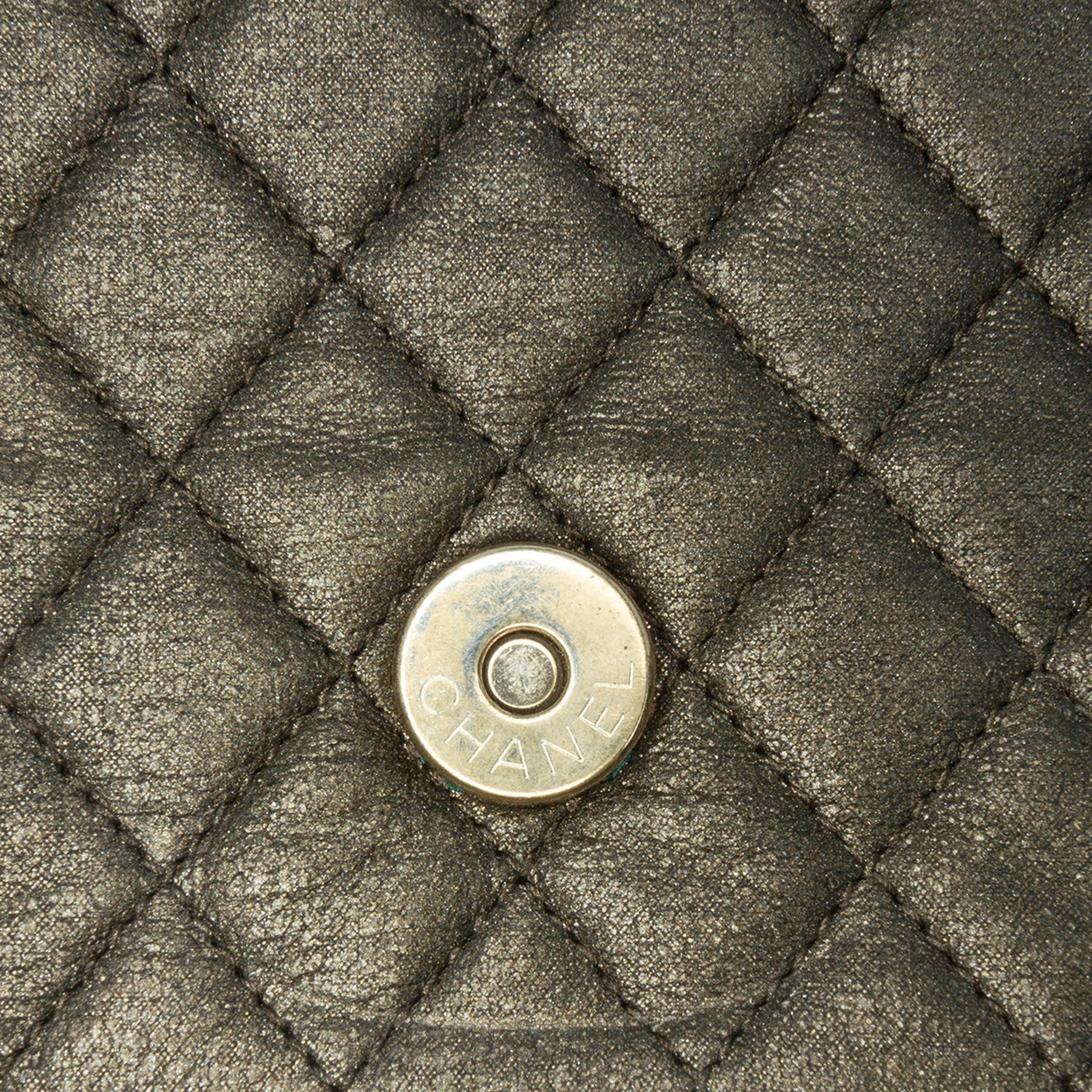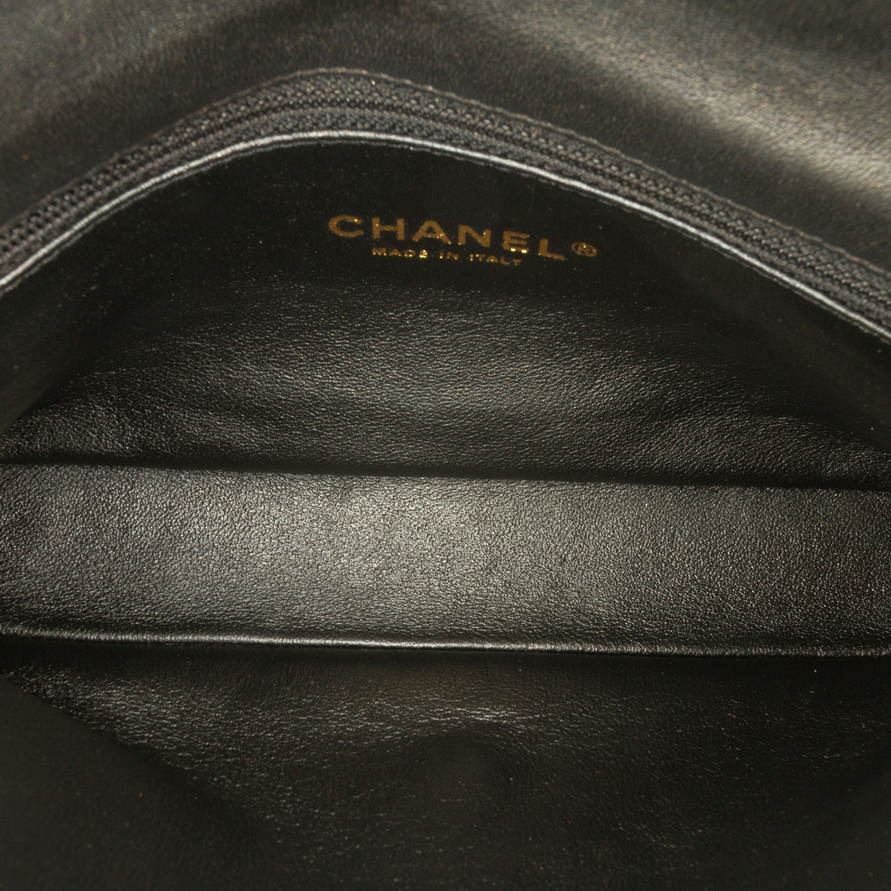 Ce sac bandoulière est doté d'un corps en cuir, d'une bandoulière en chaîne tressée en cuir, d'un logo CC orné de cristaux, d'un rabat avant avec bouton-pression magnétique et d'une poche intérieure zippée. Il est en excellent état.