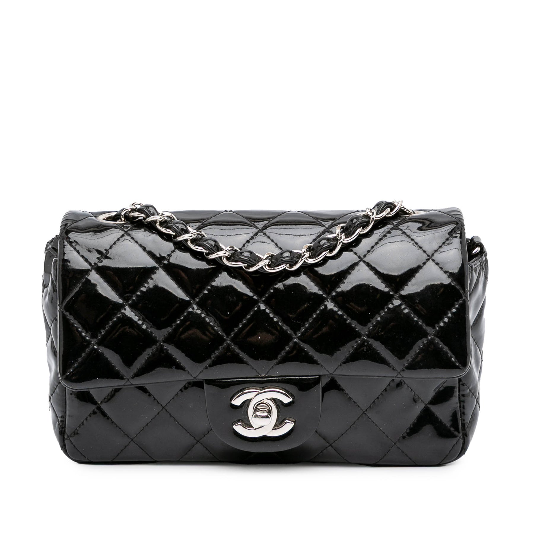 Chanel Mini Rectangular Classic Cuir verni Simple rabat Noir – GABY PARIS Authentique