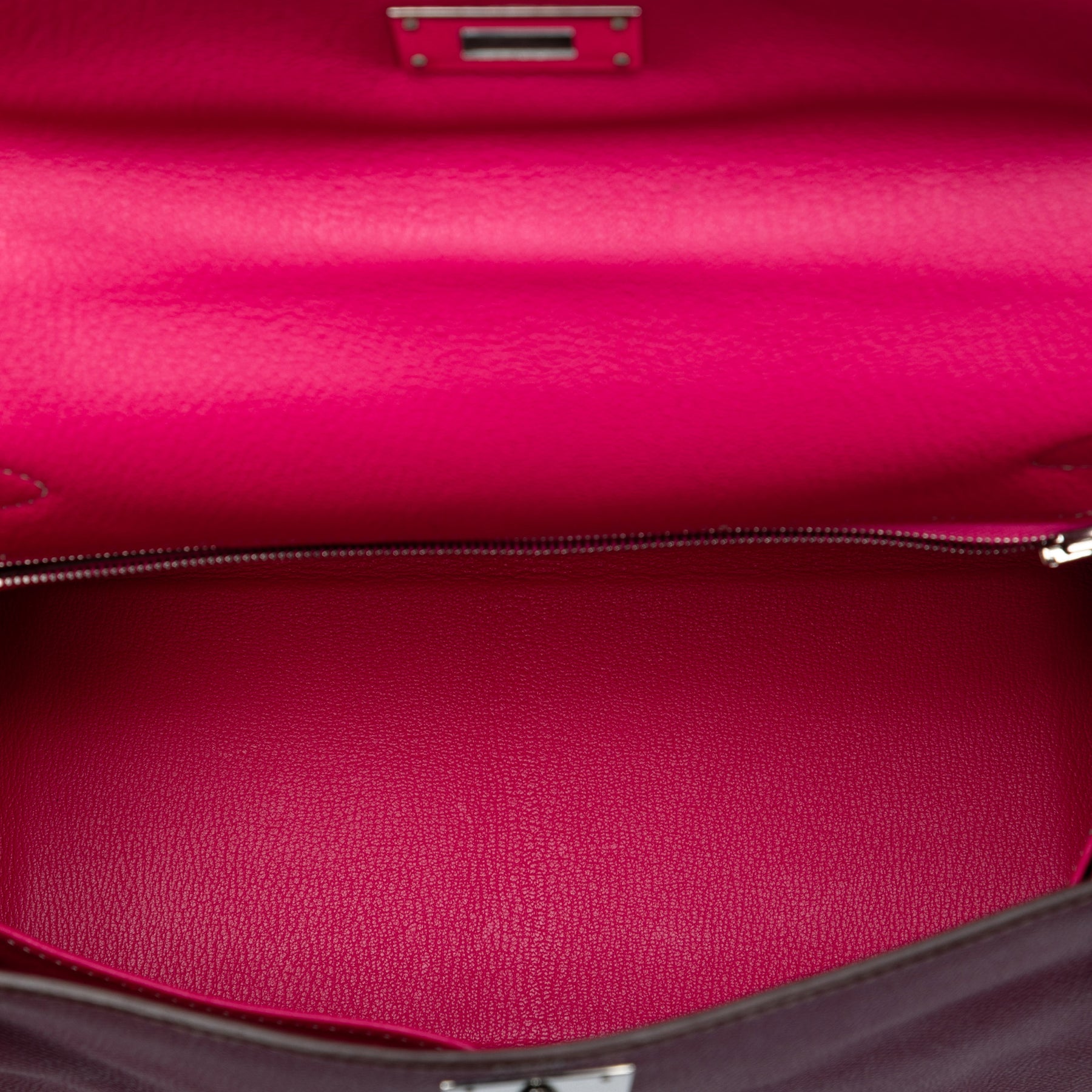 Ce sac Kelly II Retourne 28 est confectionné en cuir Epsom couleur Tosca, avec un intérieur Rose Tyrien. Il est doté d'une poignée supérieure plate en cuir, d'une bandoulière plate amovible en cuir, d'un rabat avec fermoir tourniquet et tirette, ainsi que de poches intérieures zippées et plaquées. Il est en excellent état.