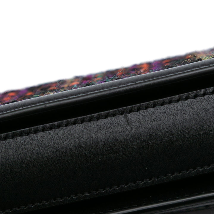 Le Solferino est doté d'un corps en tweed avec des finitions en cuir, d'une bandoulière plate réglable en cuir, d'un rabat avec fermoir et d'une poche intérieure. Il est en excellent état.