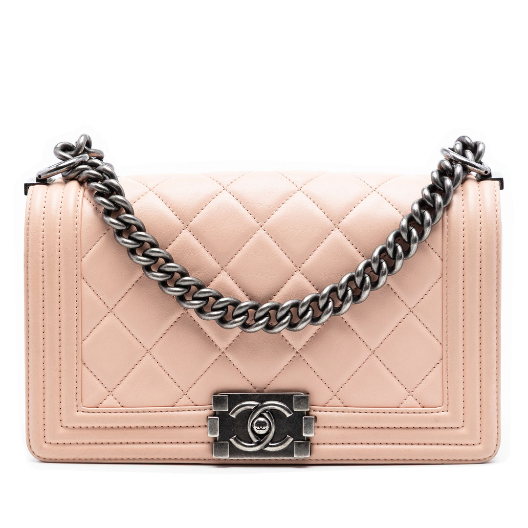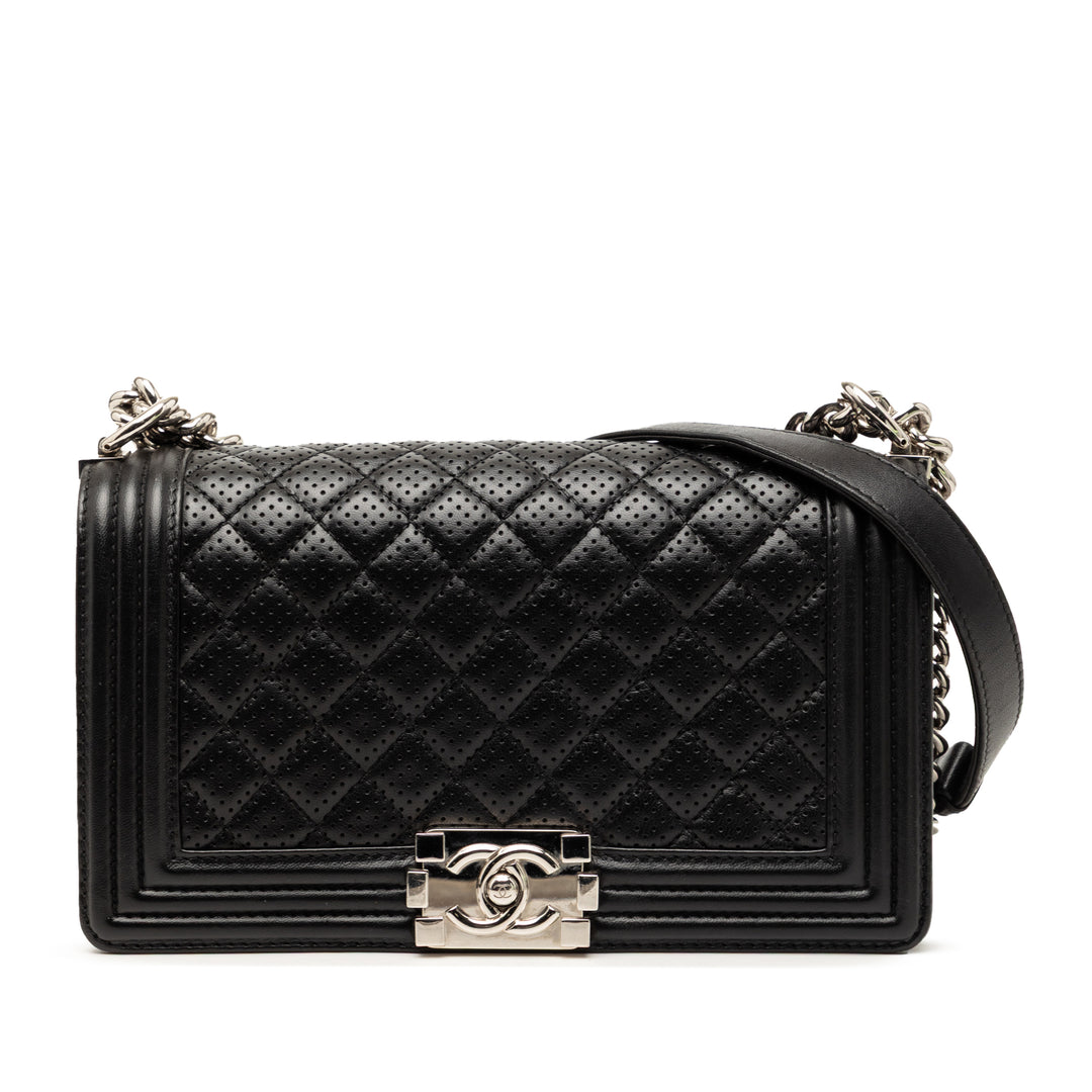 Chanel Old Medium Matelassé perforé Cuir d’agneau Boy à rabat