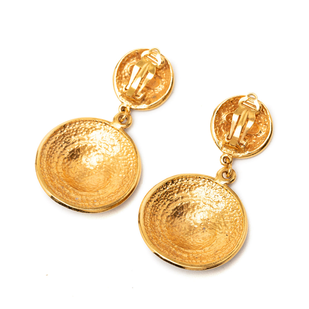 Chanel CC plaqué Rond Dangle Clip On Boucles d’oreilles