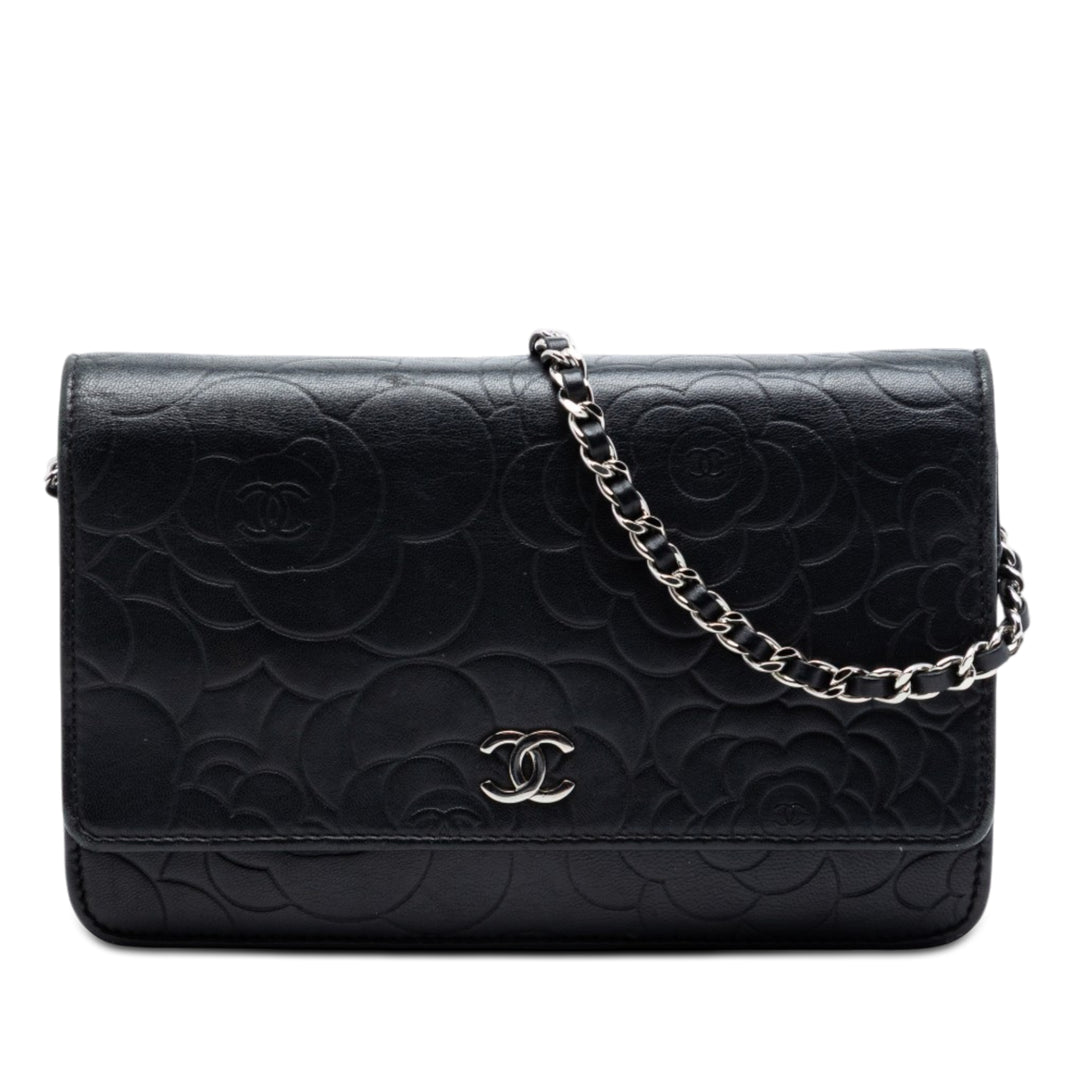 Chanel CC embossé Cuir d’agneau Camellia Wallet on Chain