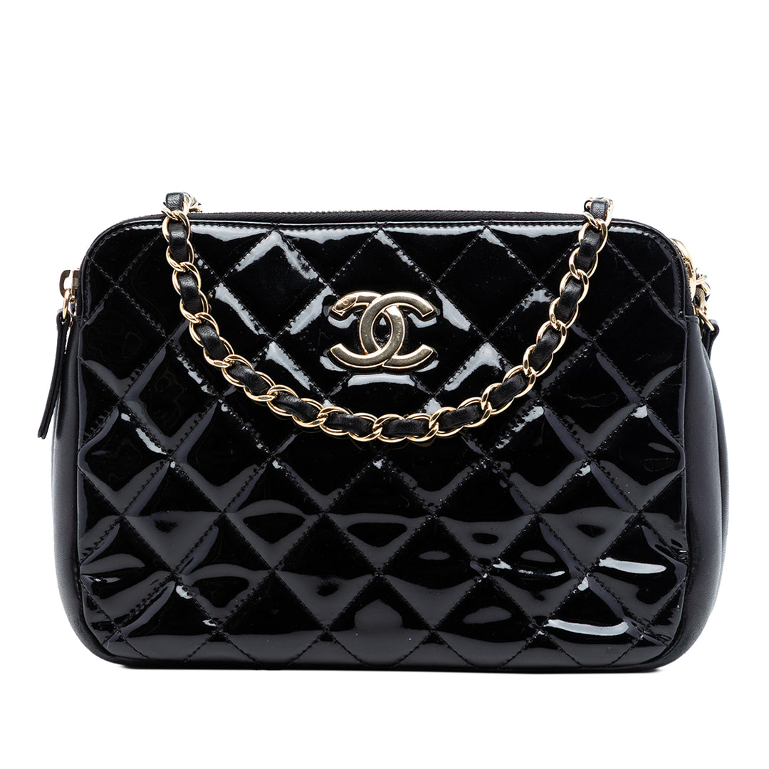 Chanel CC Matelassé Cuir verni Double Zip Sac caméra