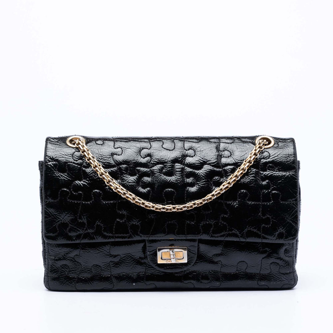 Chanel Crackled Cuir verni Puzzle Reissue 2.55 Double rabat 226