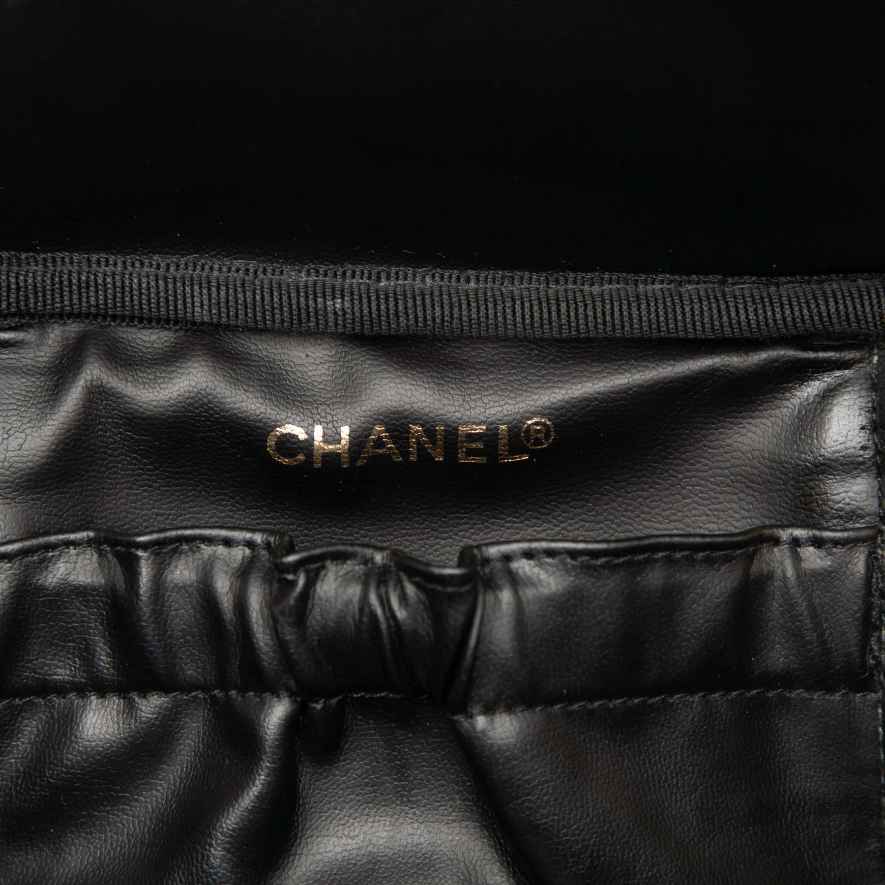 Cette trousse de toilette est en cuir caviar et possède une poignée plate, une fermeture zippée et une poche intérieure plaquée. Elle est en bon état.