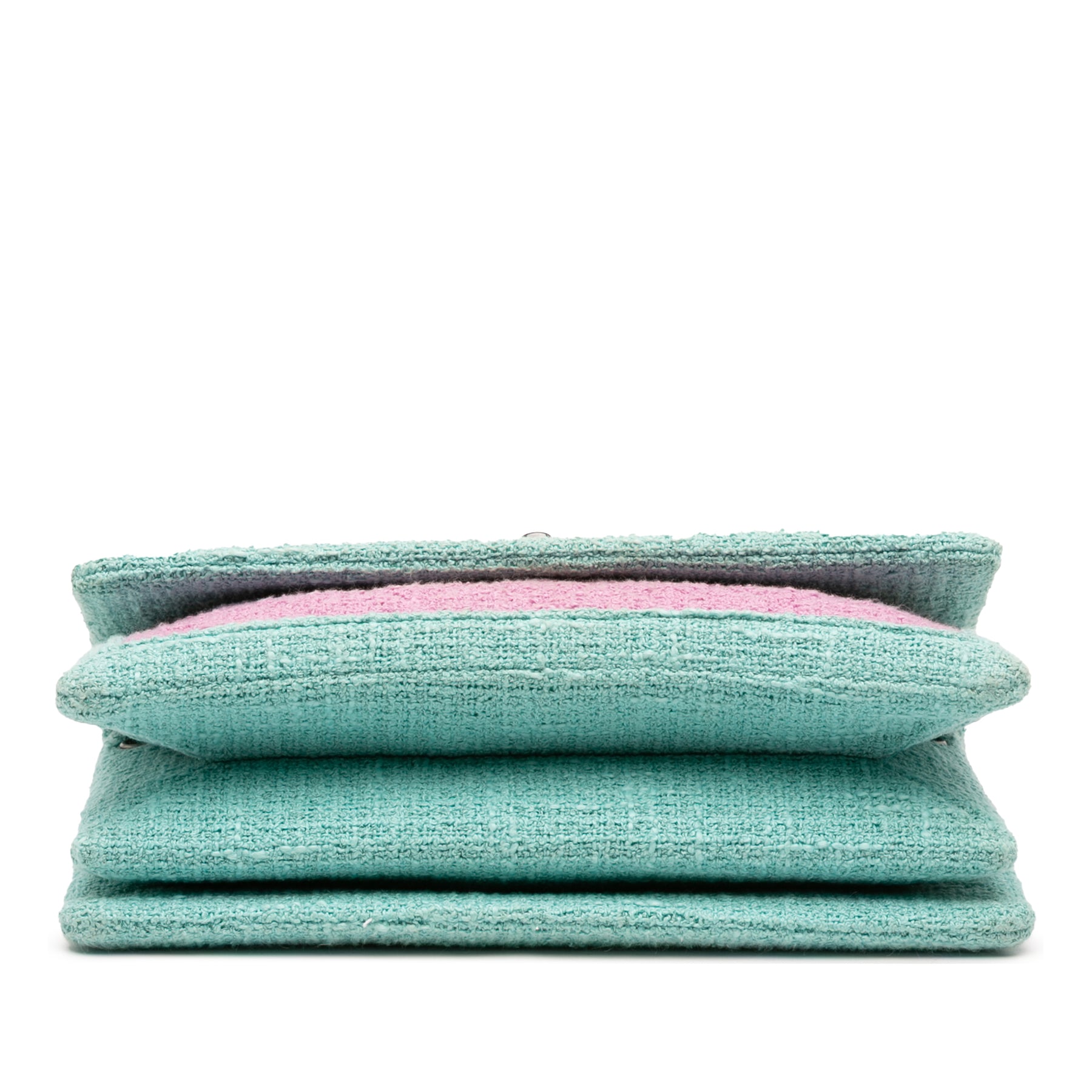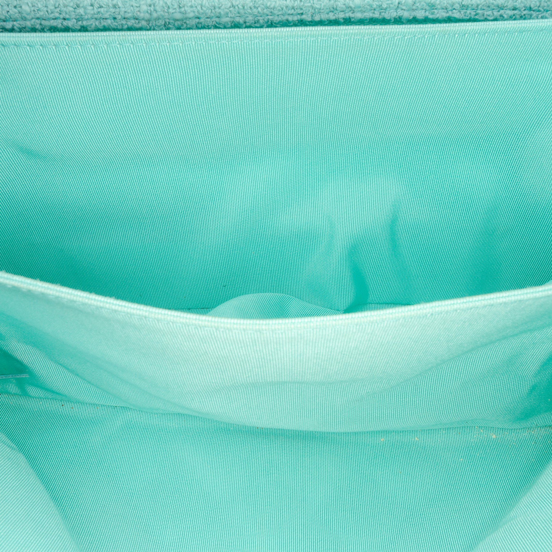 Ce sac bandoulière est confectionné en tweed matelassé et possède des bandoulières en chaîne tressée de cuir, un rabat avant avec fermoir CC et une poche intérieure zippée. Il est en excellent état.
