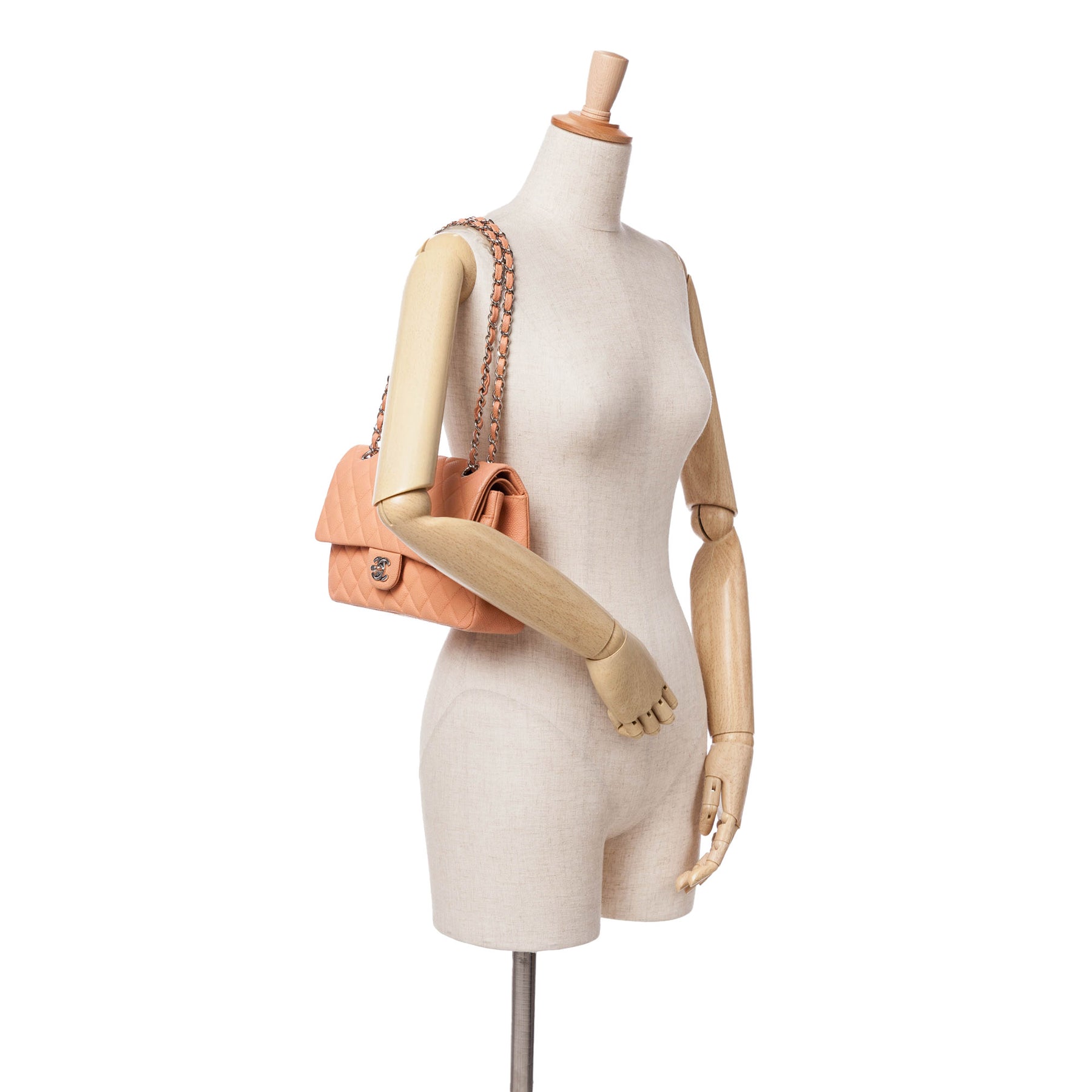 Ce sac bandoulière présente un corps matelassé en cuir caviar, des bandoulières en chaîne tressée, un double rabat avant orné de C entrelacés et d'une fermeture à tourniquet, une poche plaquée extérieure au dos, ainsi que des poches intérieures zippées et plaquées. Il est en bon état.