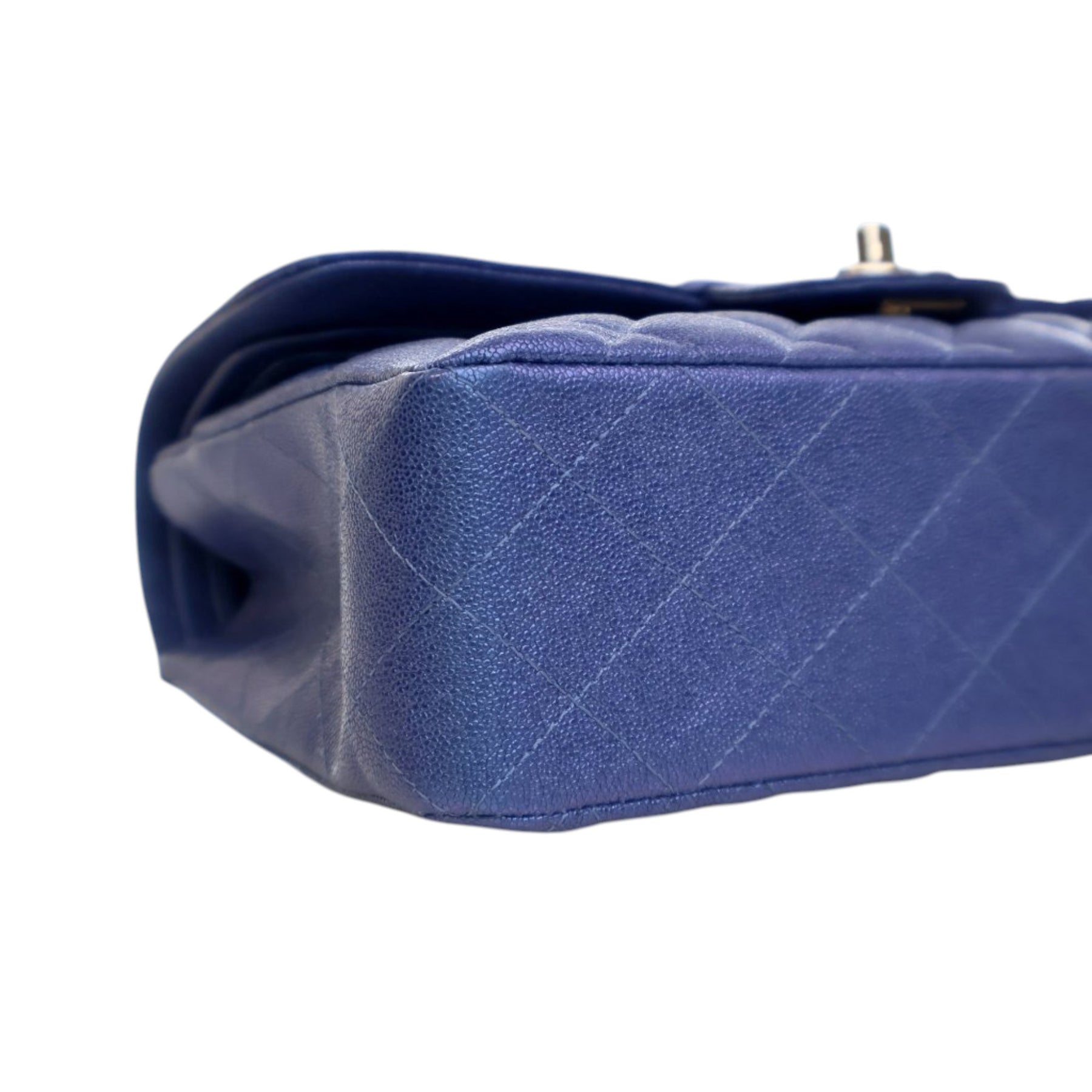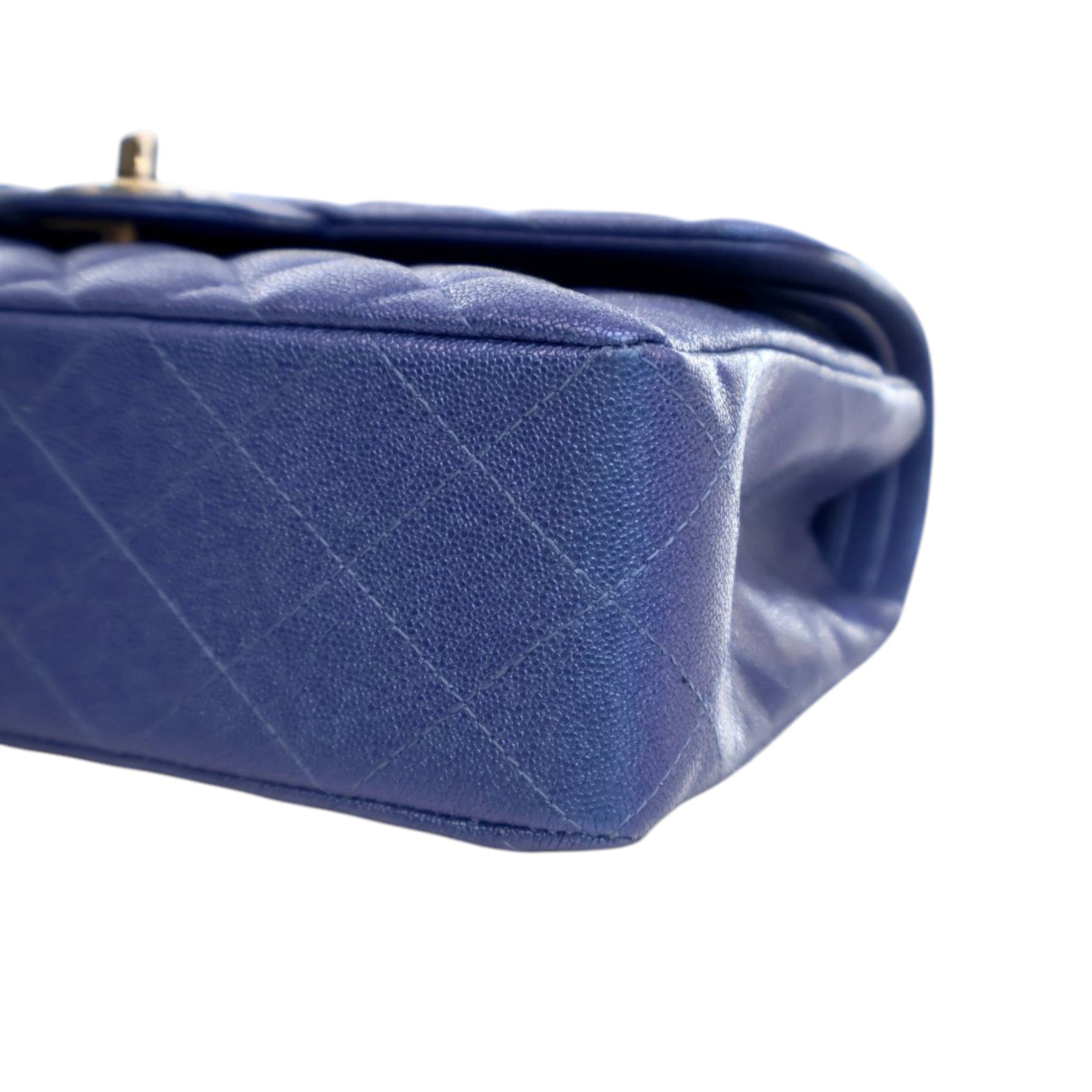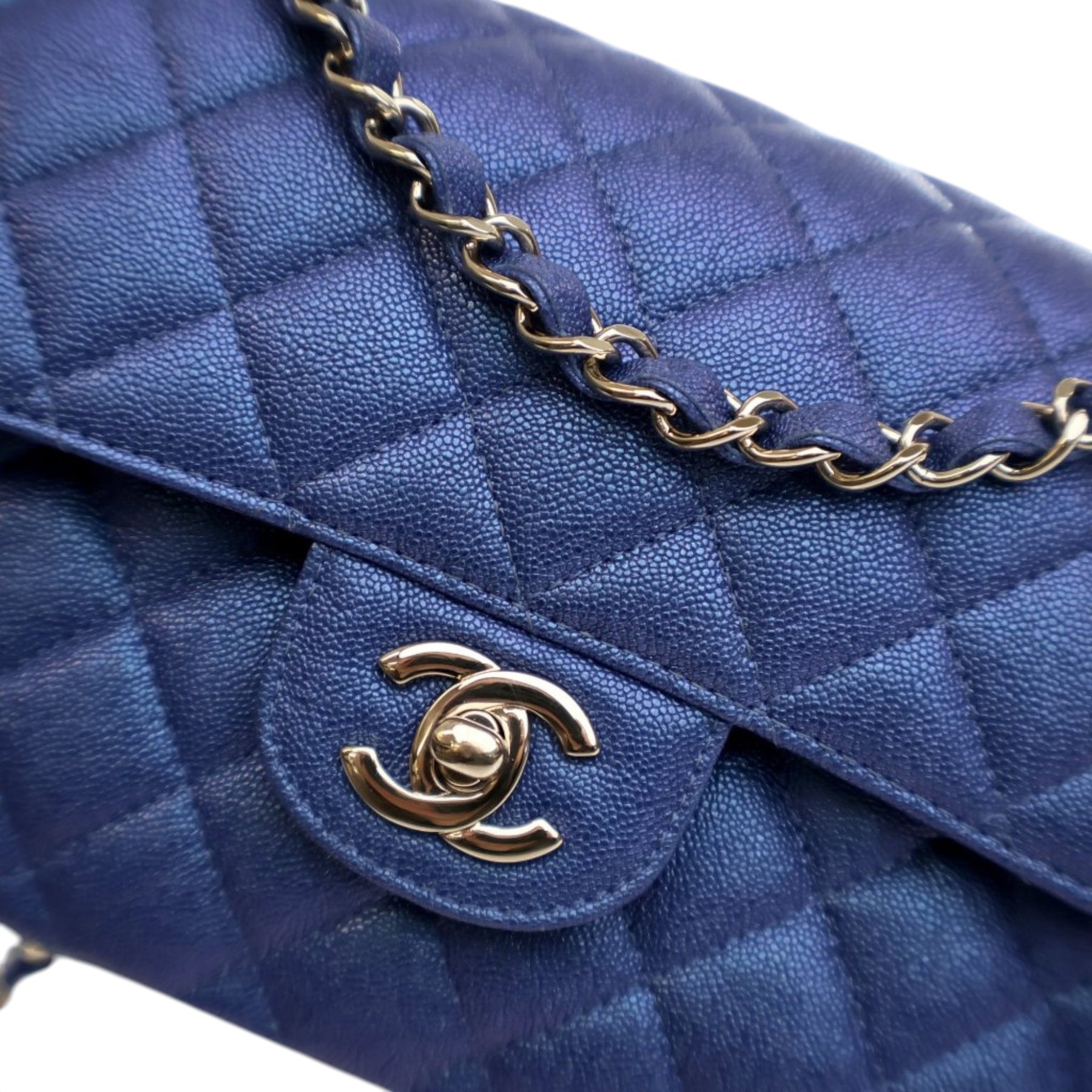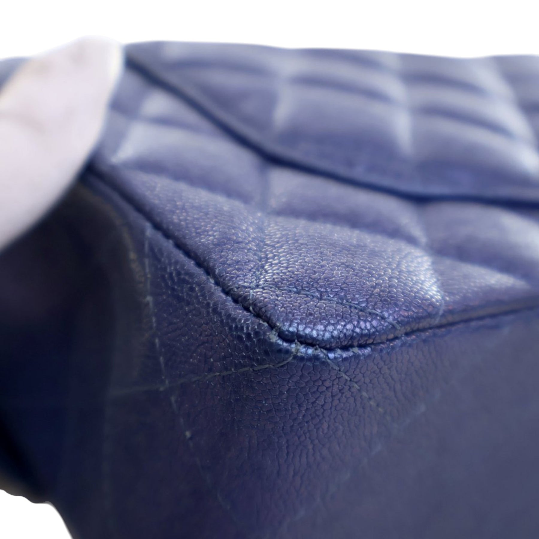 Ce sac bandoulière est confectionné en cuir caviar matelassé et possède des bandoulières en chaîne tressée de cuir, un double rabat avant avec fermoir CC, une poche plaquée extérieure au dos, ainsi que des poches intérieures zippées et plaquées. Il est en excellent état.