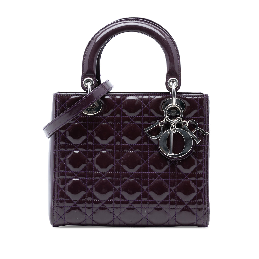 Dior Large Cuir verni Cannage Lady Dior Bleu