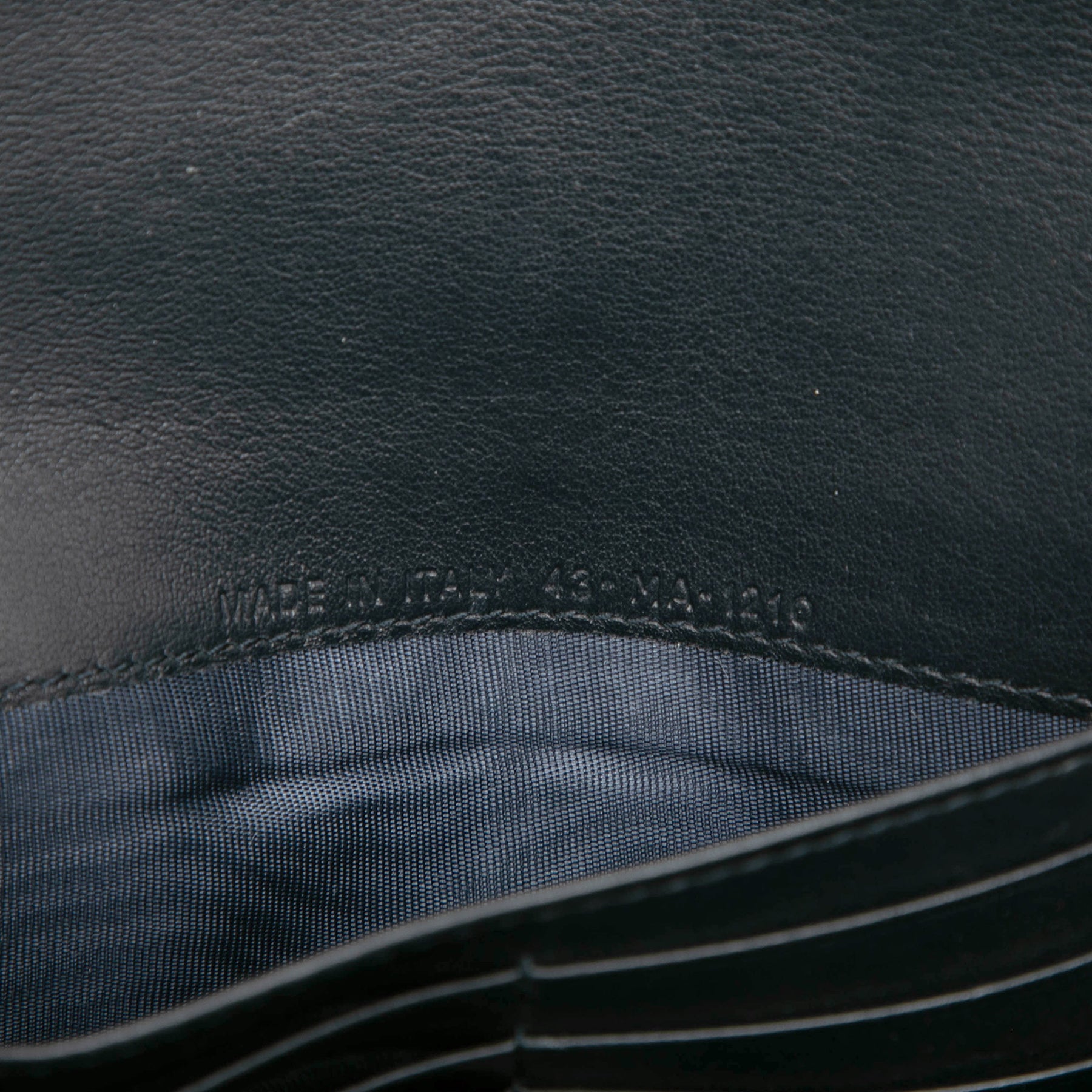 Ce portefeuille à bandoulière chaîne est en toile, possède une bandoulière chaîne amovible, un rabat à fermeture pression et des poches intérieures plaquées. Il est en bon état.