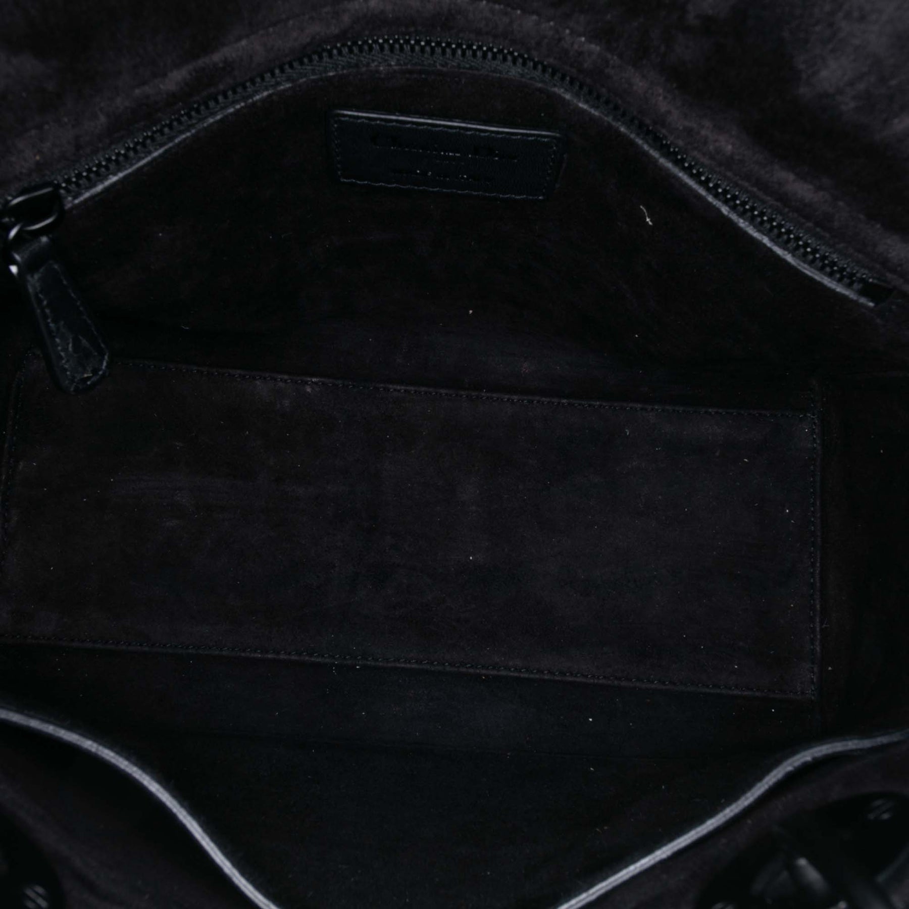 Le sac Lady Dior est confectionné en cuir peint et présente des poignées plates en cuir, une bandoulière plate amovible en cuir, une fermeture à rabat et une poche intérieure zippée. Il est en excellent état.