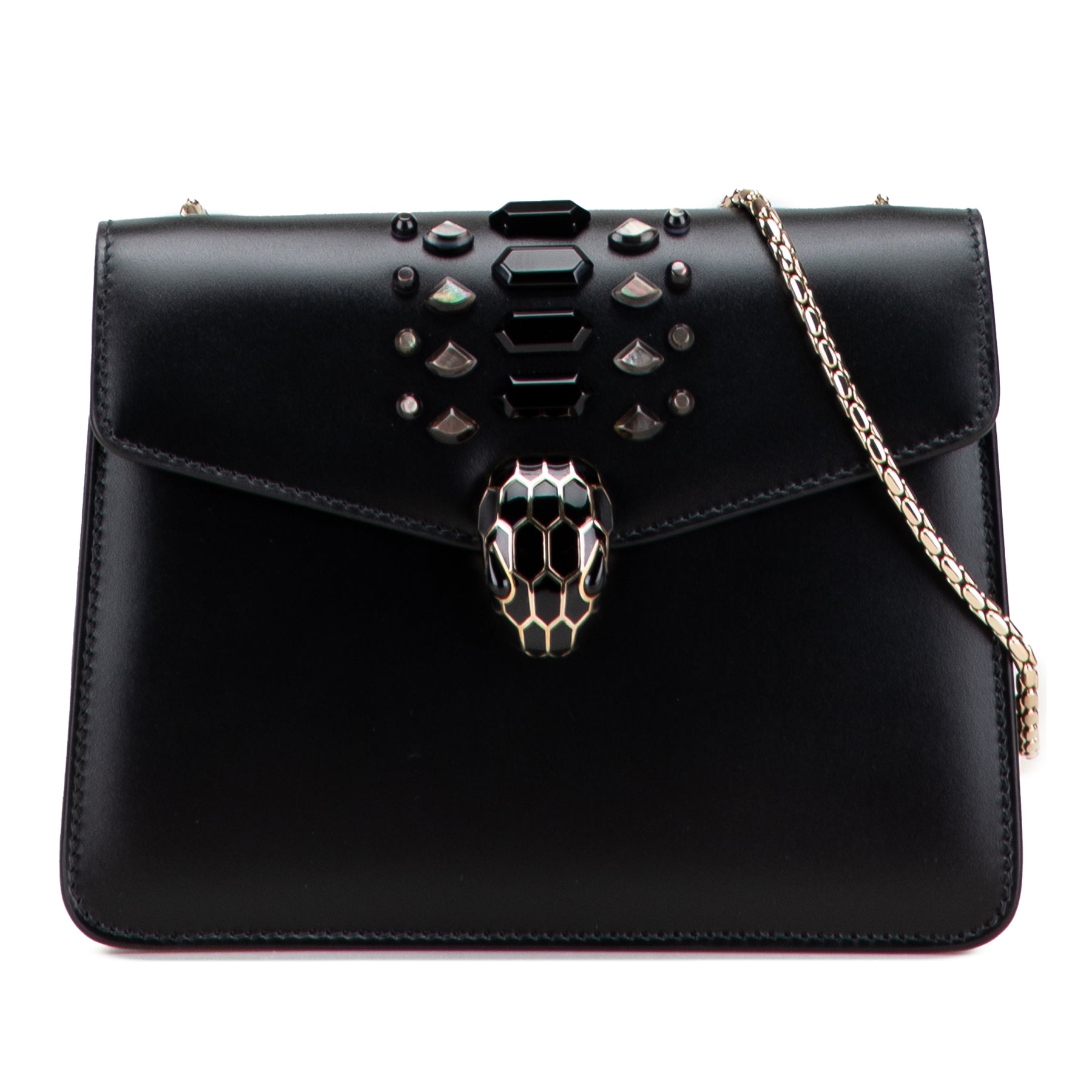 Bvlgari Embellished Cuir de veau Serpenti Forever Sac porté croisé Noir