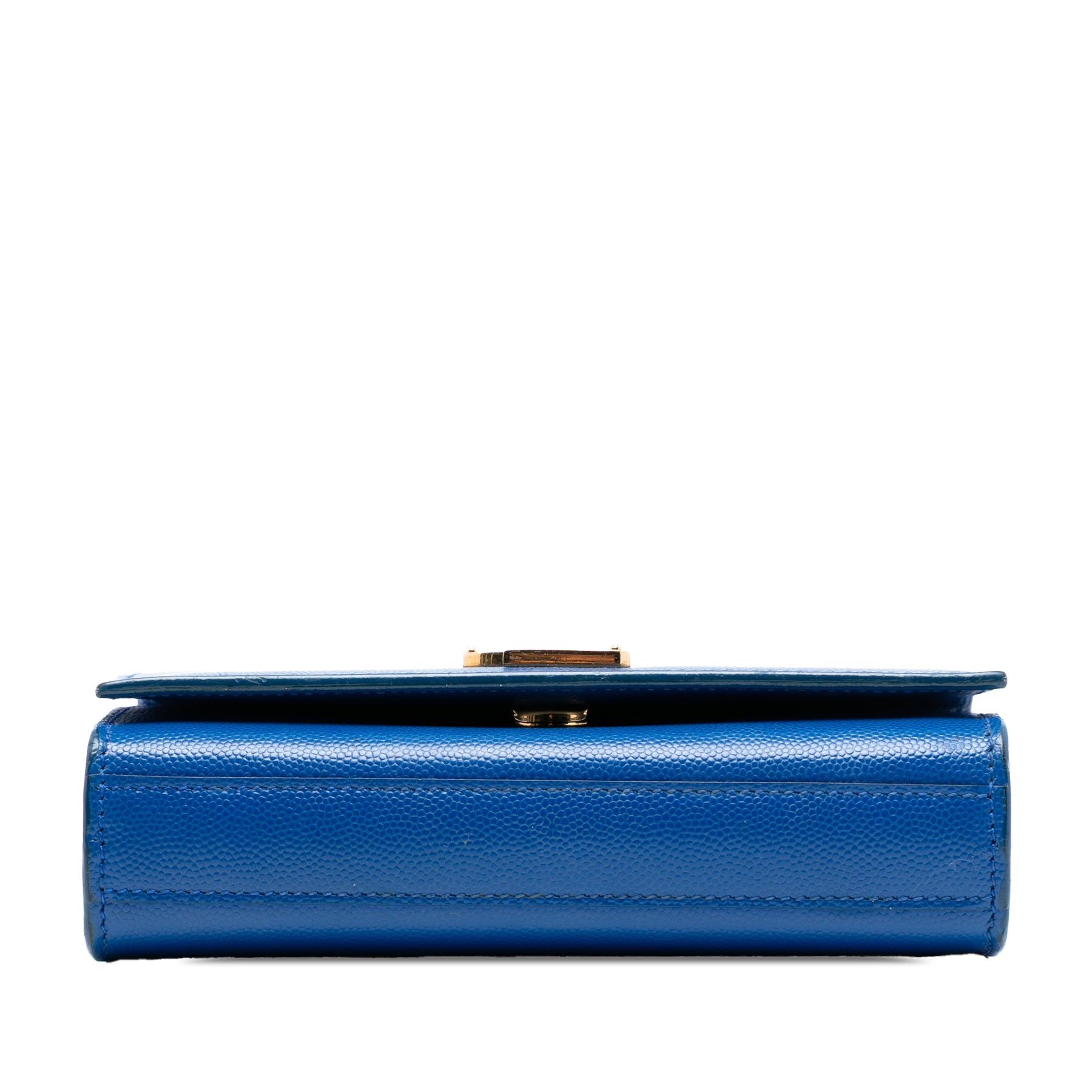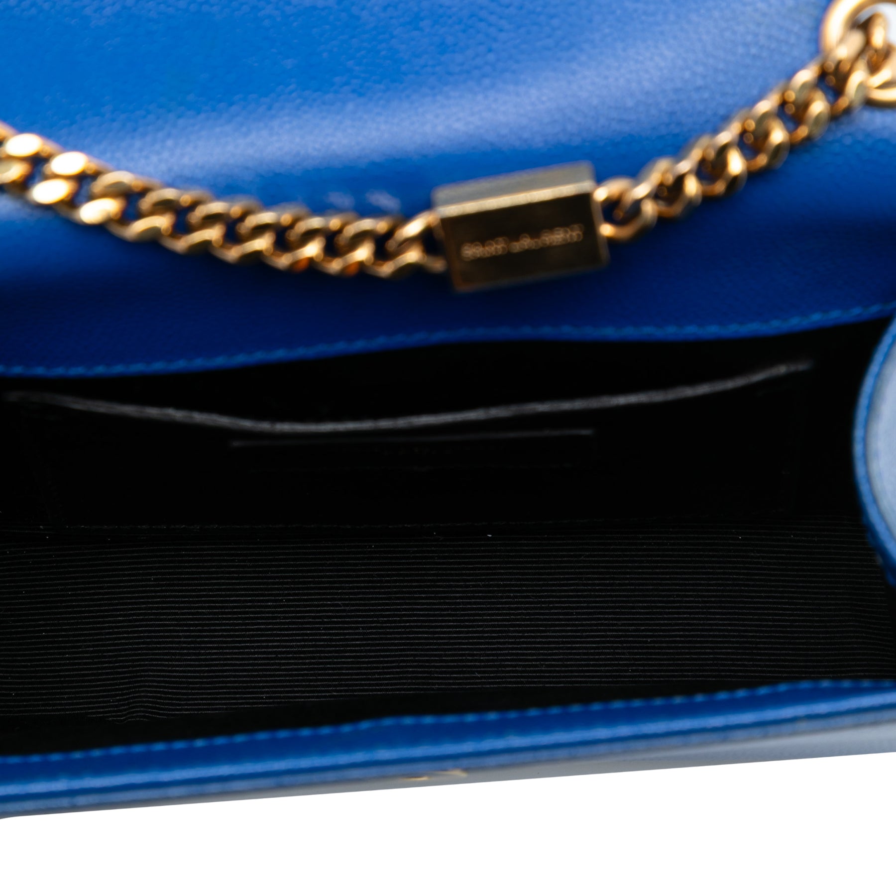 Le sac bandoulière Kate est en cuir, possède une bandoulière chaîne dorée, un rabat orné du logo YSL en métal et d'une fermeture magnétique, ainsi qu'une poche intérieure plaquée. Il est en excellent état.