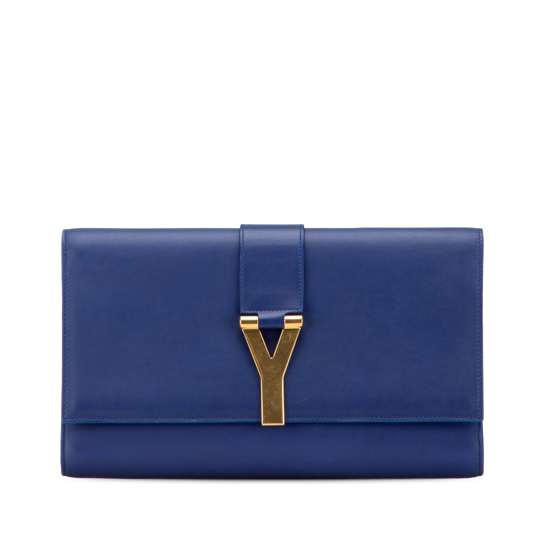 La pochette Chyc Ligne est en cuir, avec un rabat orné d'un Y doré et d'une fermeture magnétique, ainsi qu'une poche intérieure plaquée. Elle est en bon état.