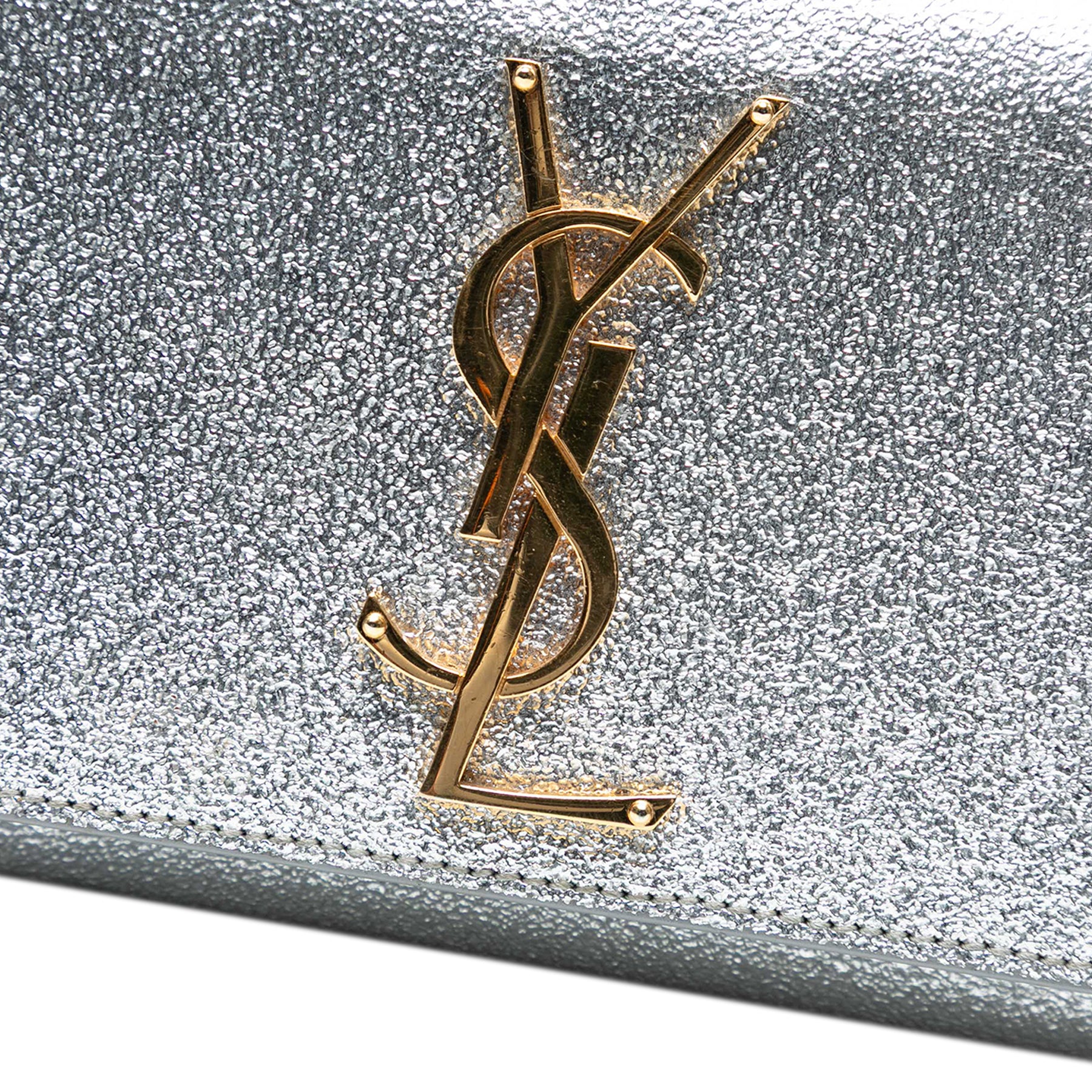 Saint Laurent Small Métallisé Cuir de veau Classic Monogram Kate Sac porté croisé Argenté