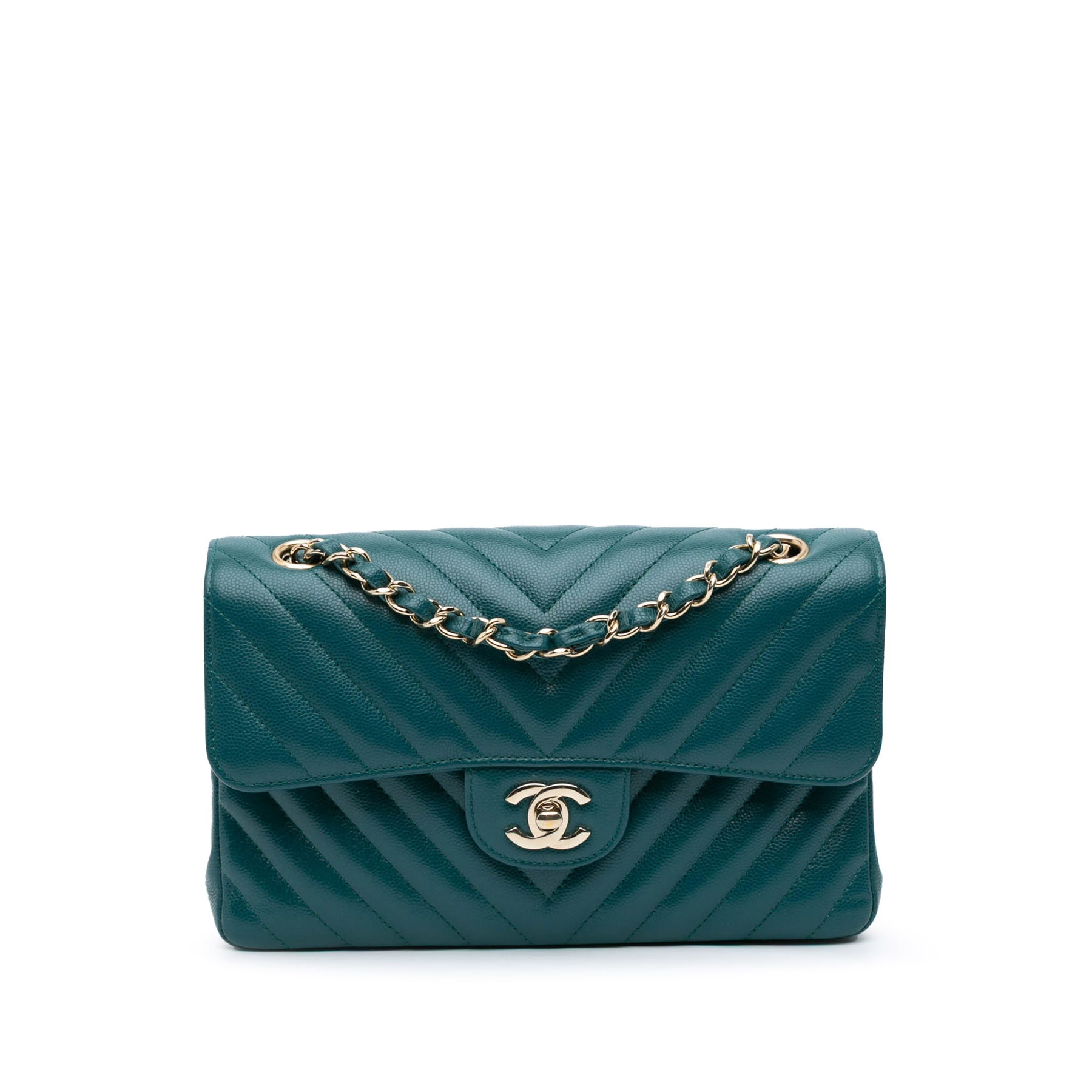 Chanel Small Classic Chevron Caviar Double rabat Bleu