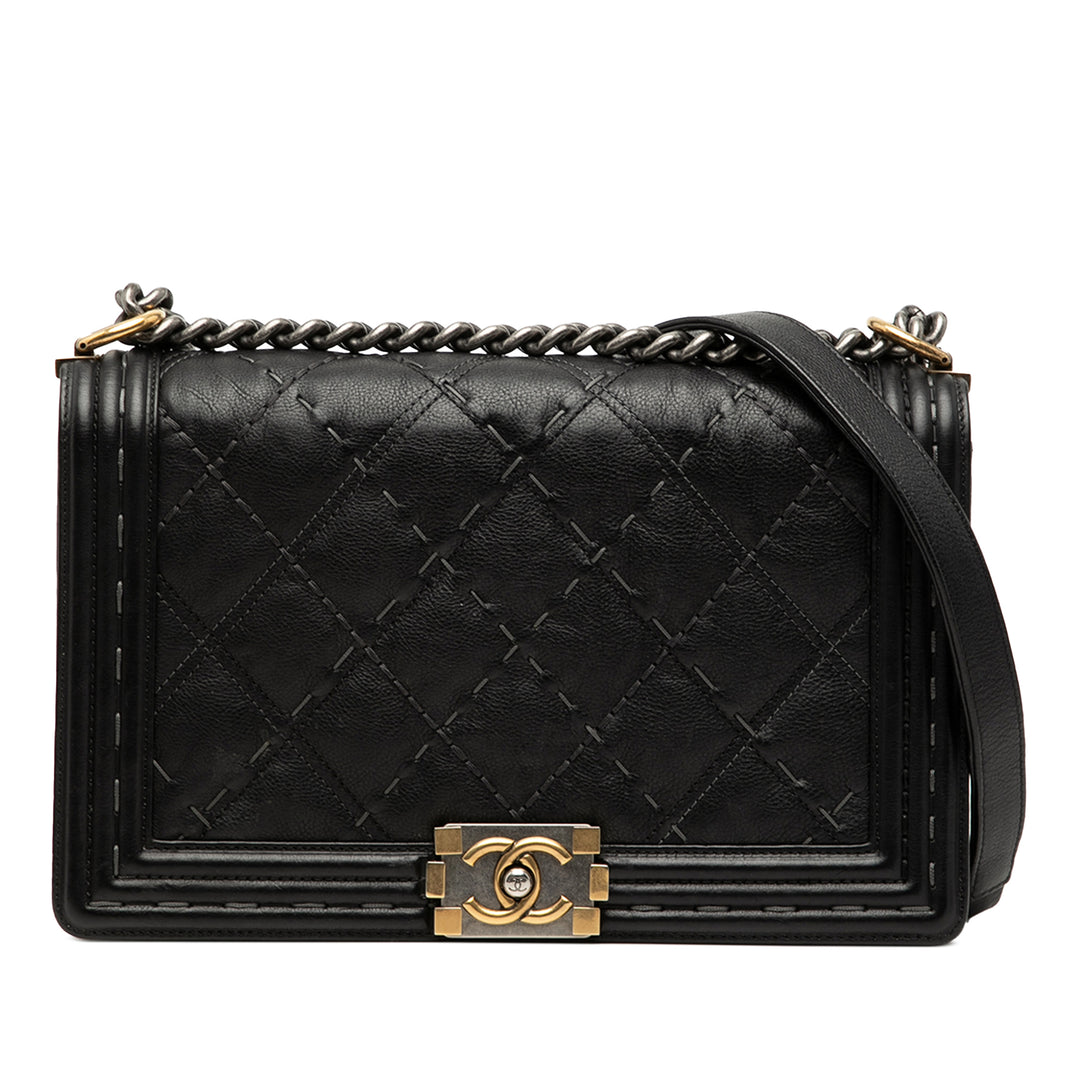 Chanel Medium Matelassé Cuir de veau Wild Stitch Boy à rabat