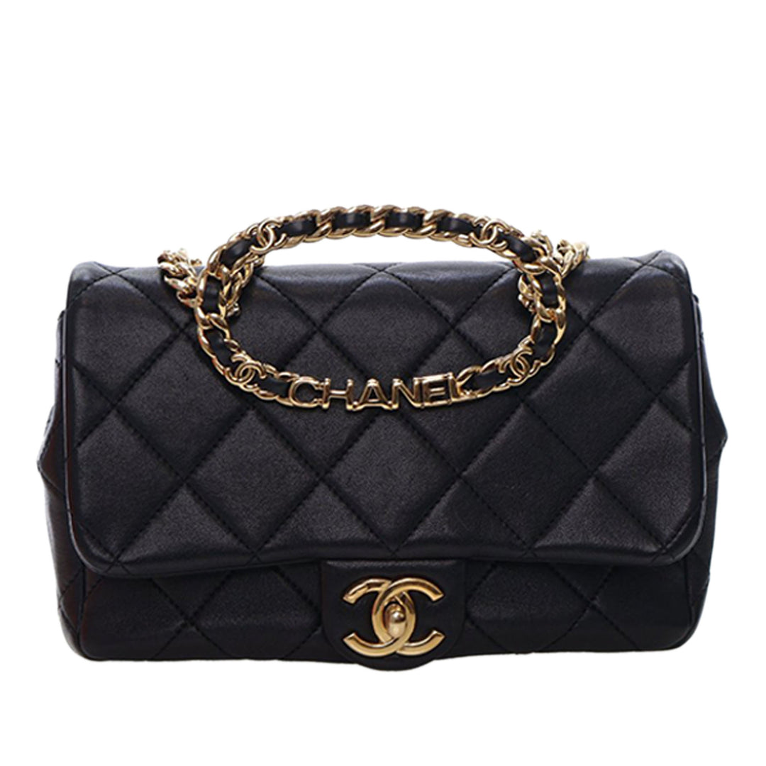 Chanel Small Matelassé Cuir d’agneau Rond anse supérieure à rabat