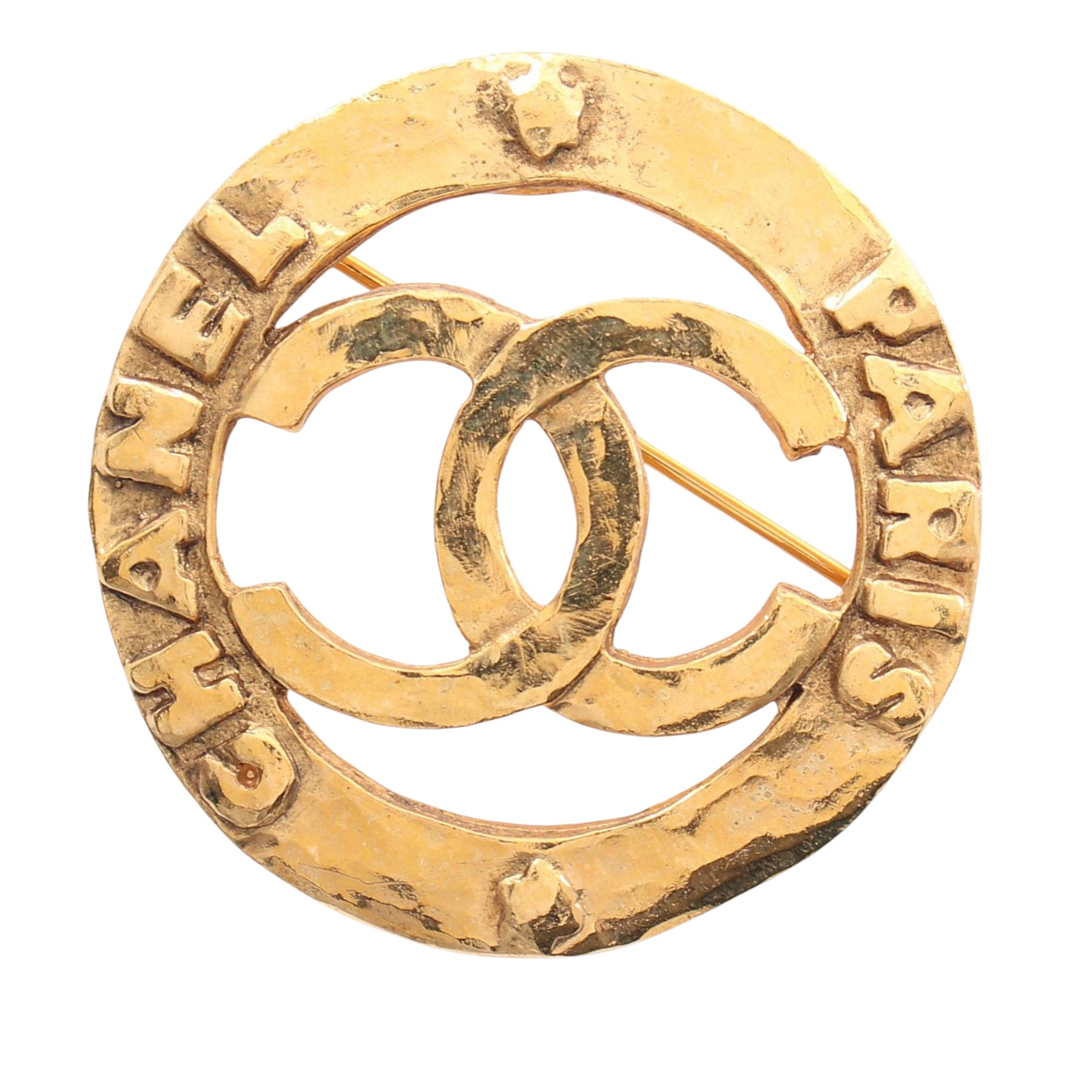 Cette broche est en métal doré et se ferme par une épingle au dos. Elle est en bon état.