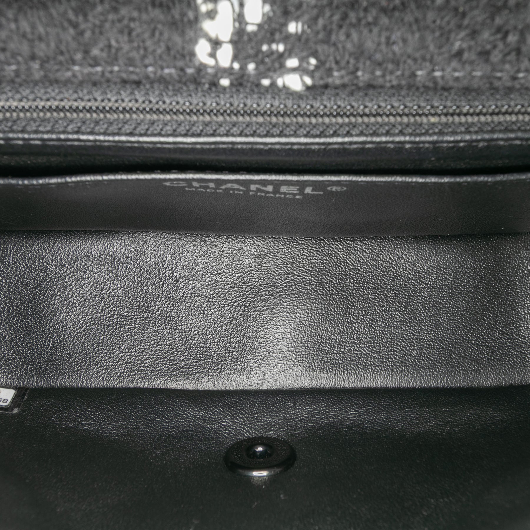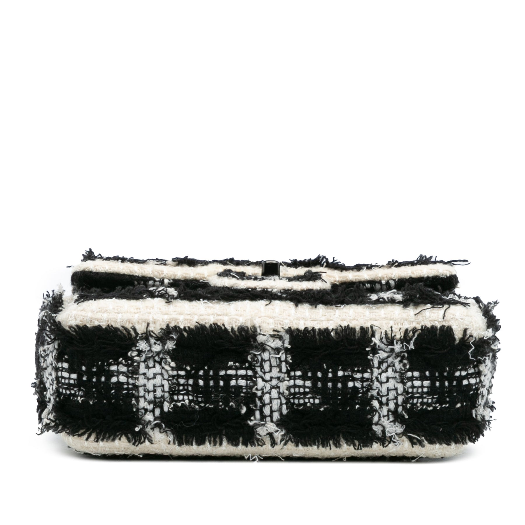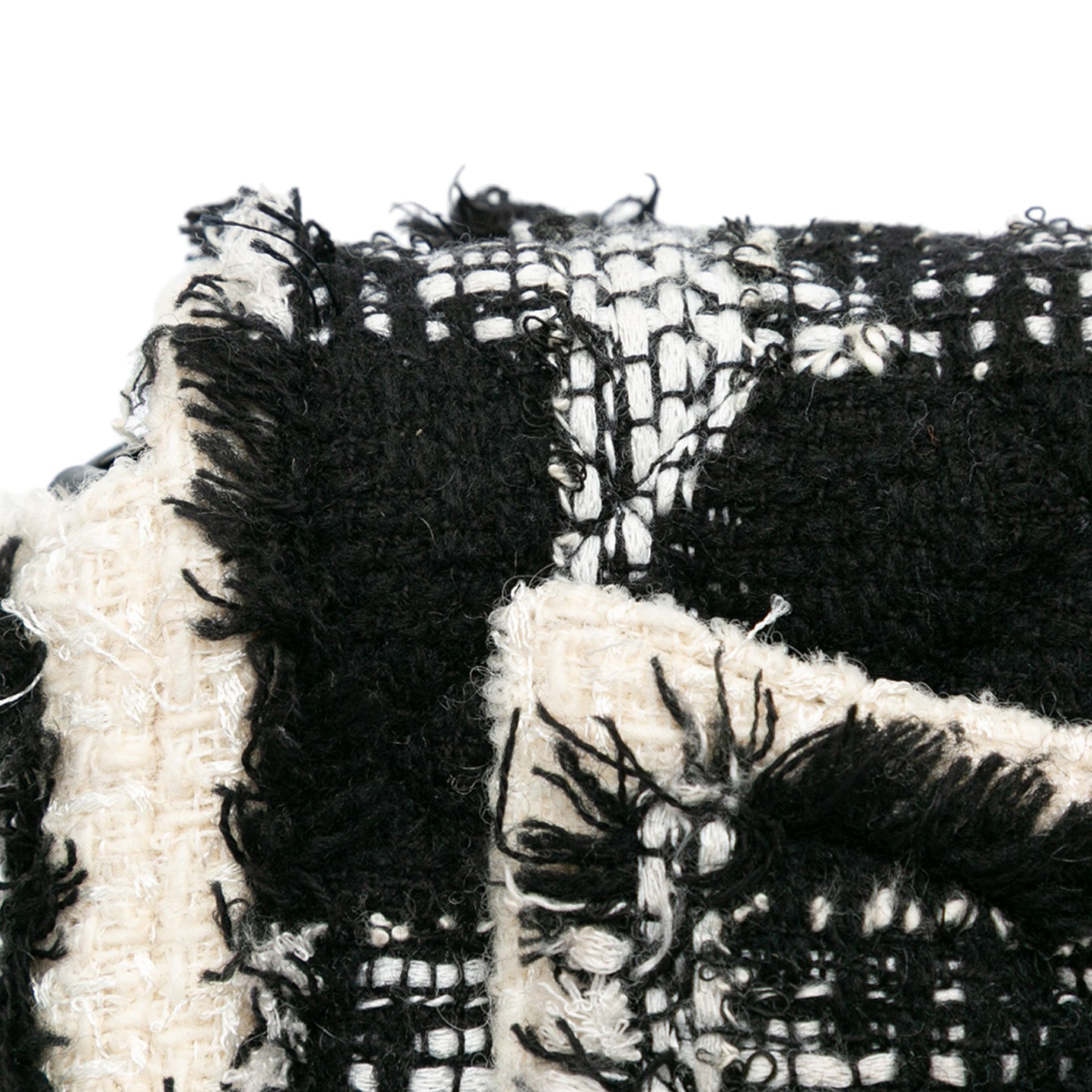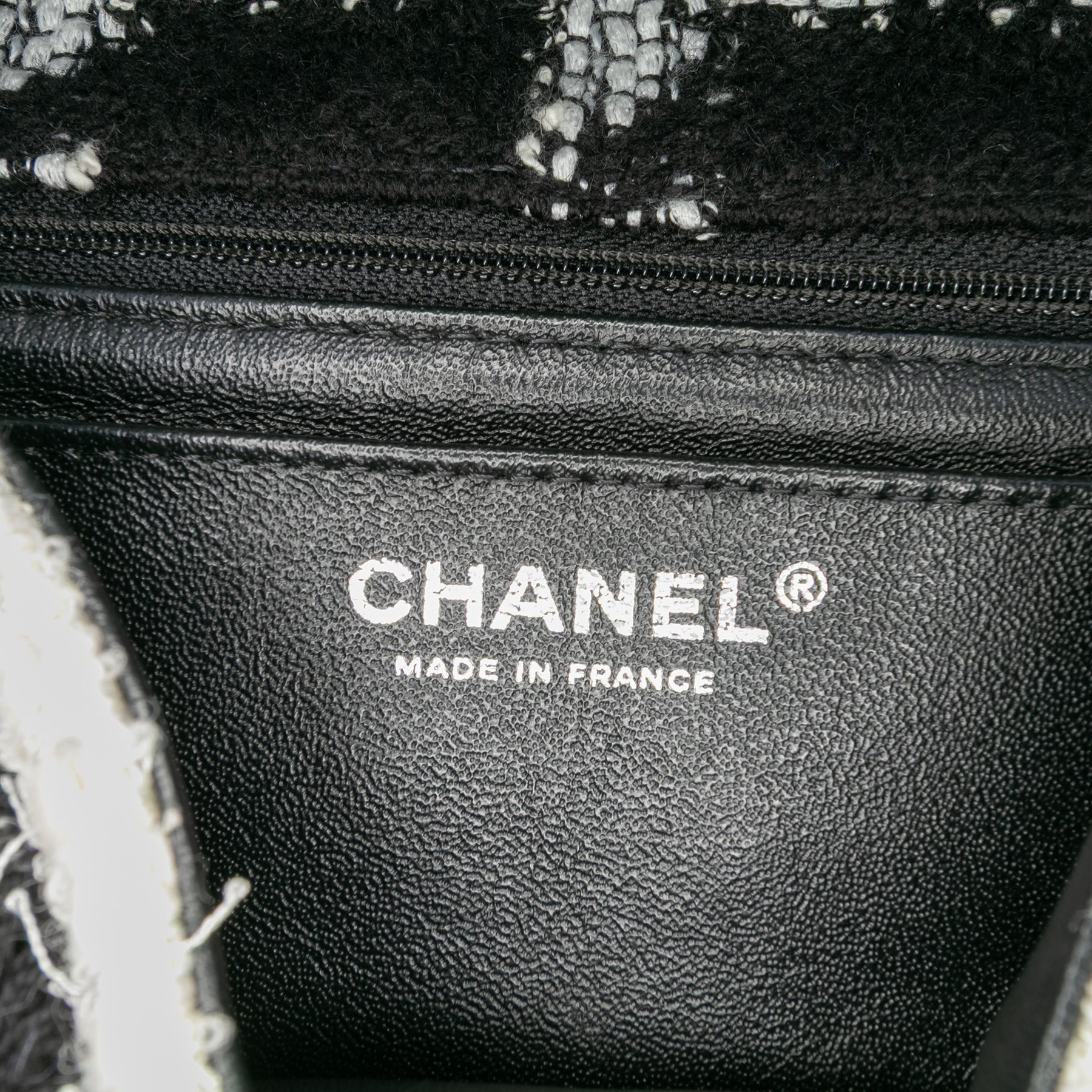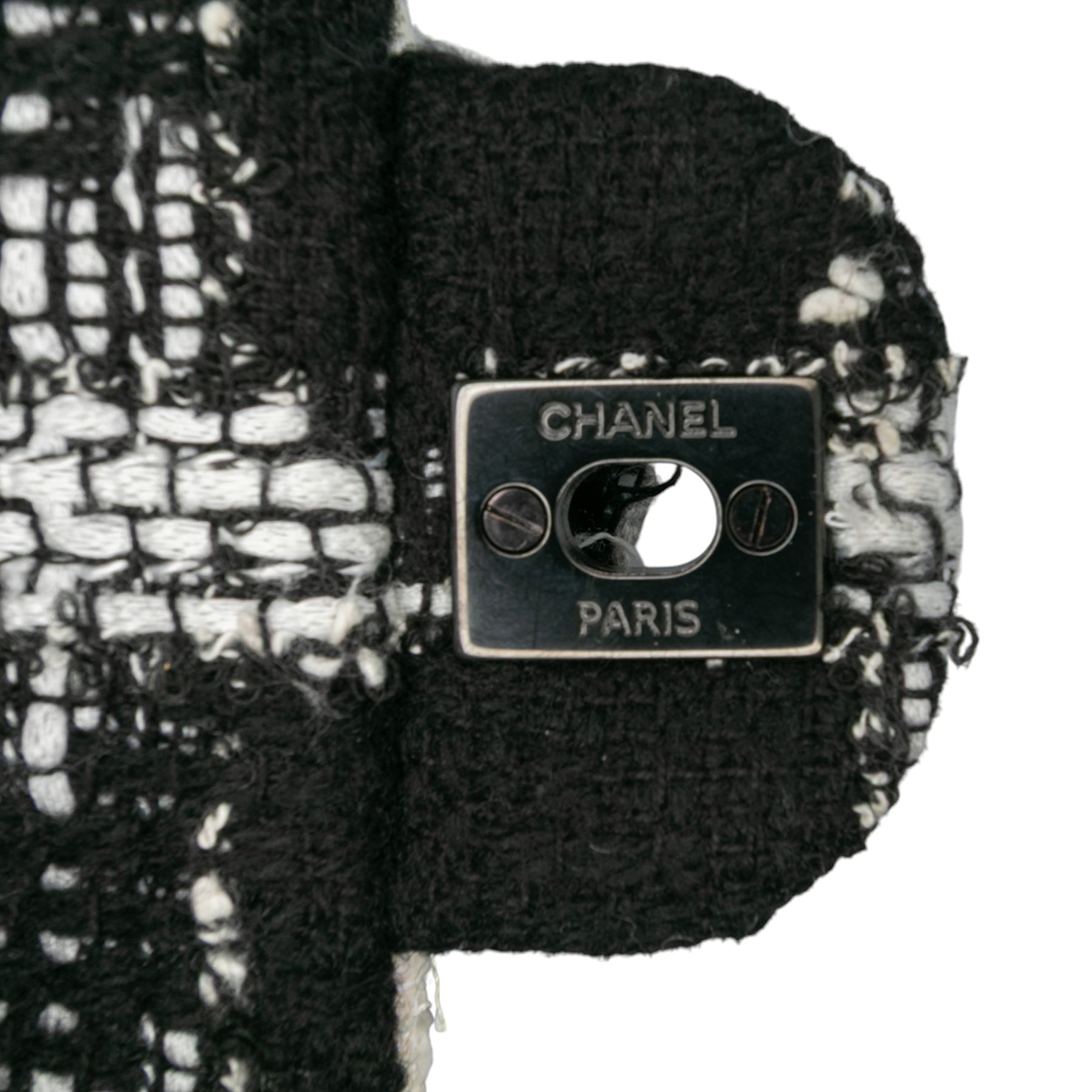 Ce sac à rabat est doté d'un corps en tweed matelassé, d'une bandoulière chaîne en tweed tissé, d'un rabat avant avec des C entrelacés et un fermoir à vis, d'une poche extérieure plaquée au dos et de poches intérieures zippées et plaquées. Il est en excellent état.