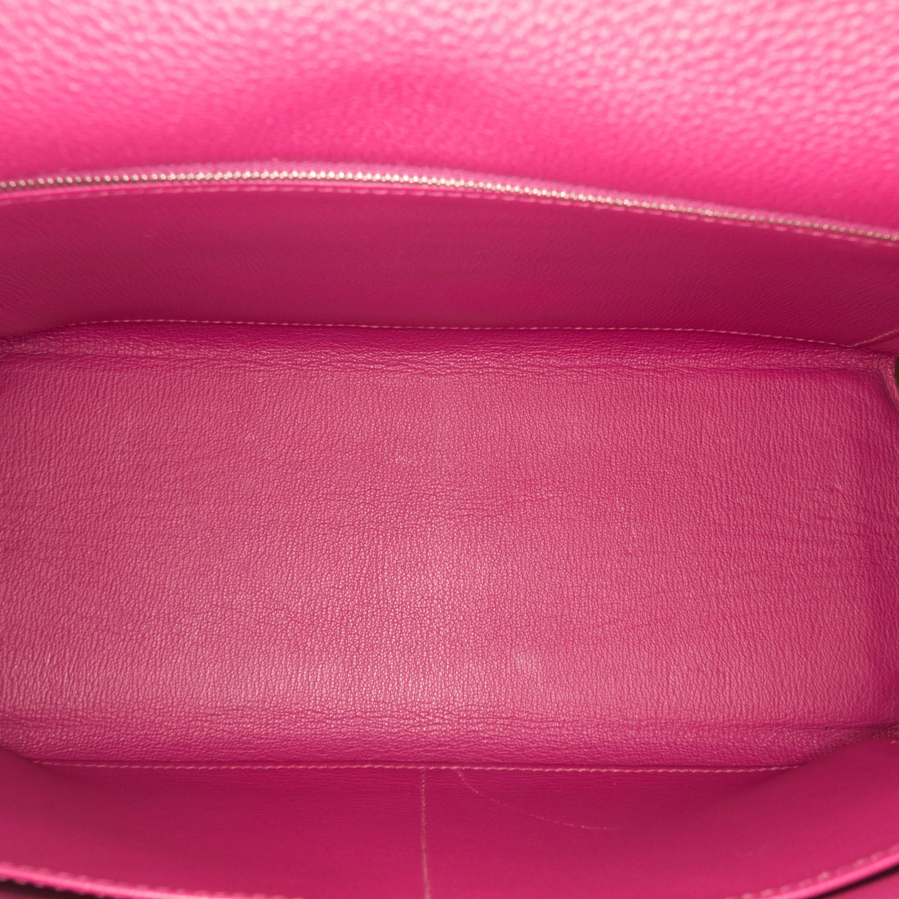 Ce sac Kelly 32 est confectionné en cuir Togo couleur Tosca et possède une poignée supérieure plate en cuir, une bandoulière plate amovible en cuir, un rabat supérieur avec fermeture à tourniquet, ainsi que des poches intérieures zippées et plaquées. Il est en excellent état.